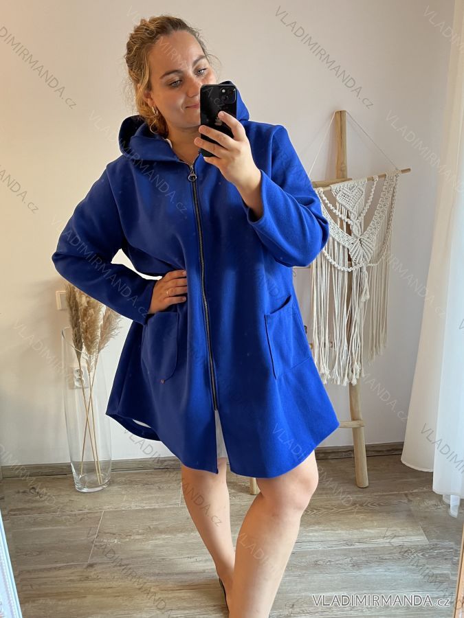 Kabát flaušový na zips dlhý rukáv dámsky nadrozmer (3XL/4XL ONE SIZE) TALIANSKA MÓDA IMWQ233261/DR hnedá