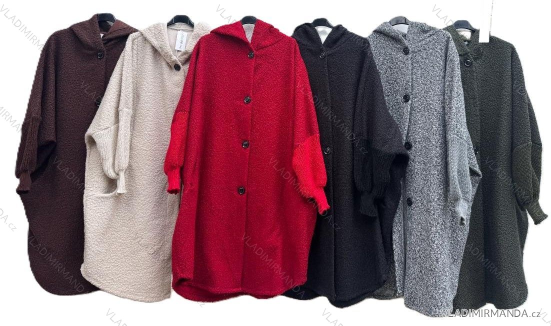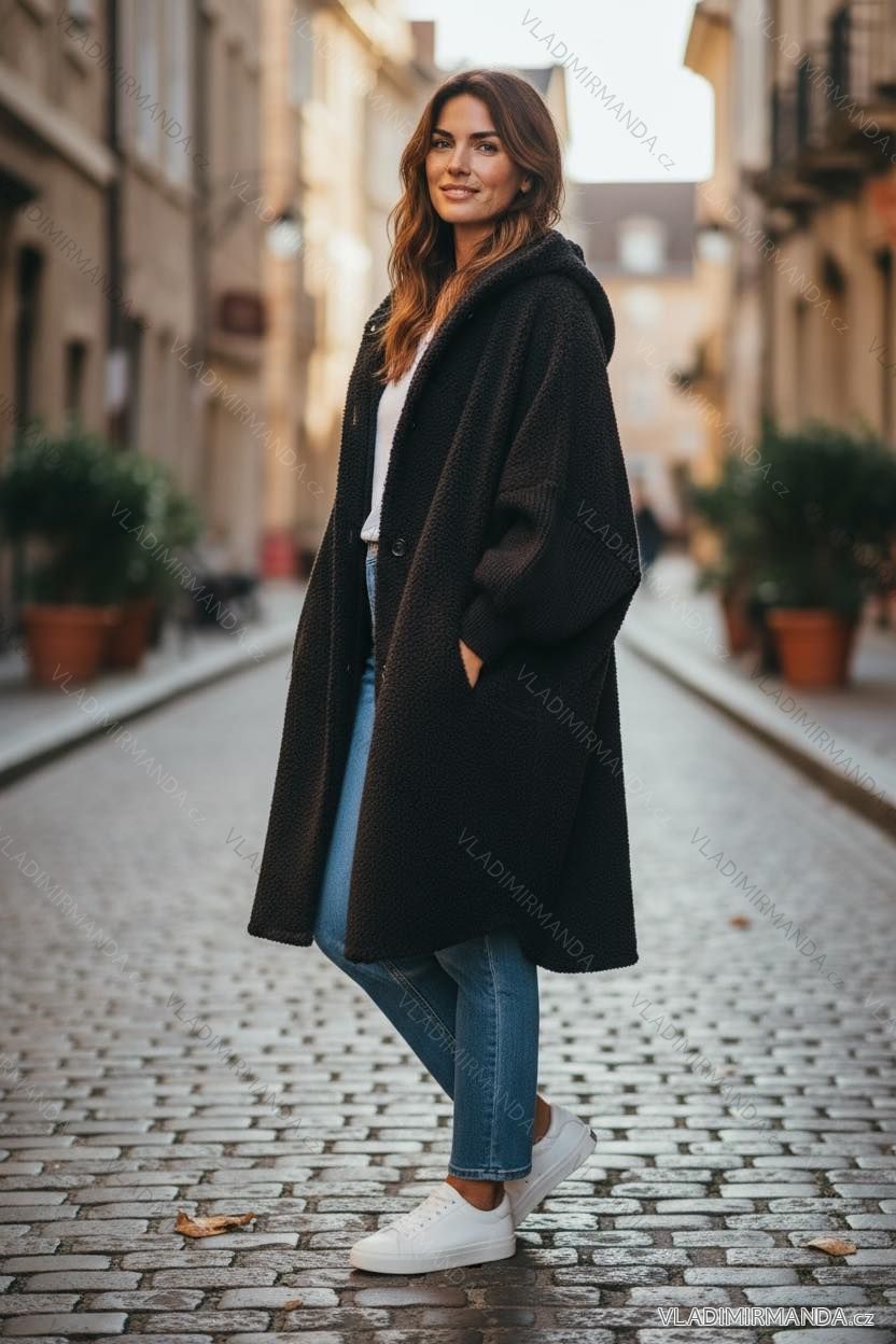 Kabát flaušový teplý dlhý rukáv dámsky nadrozmer (54/56/58 ONE SIZE) TALIANSKA MÓDA IMD25274