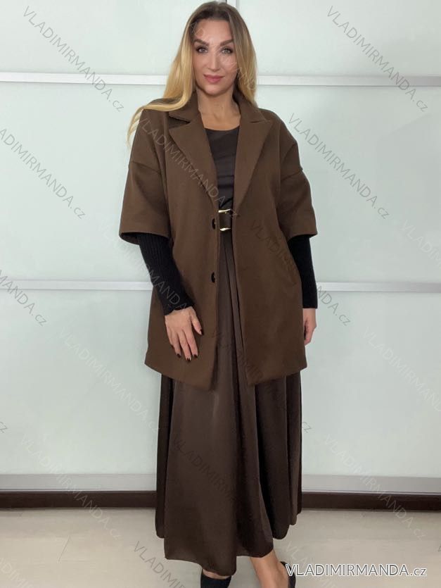 Kabát jesennej oversize na gombíky dlhý rukáv dámsky (S/M/L ONE SIZE) TALIANSKA MÓDA IMWCL252811/DUR S/M/L hnedá