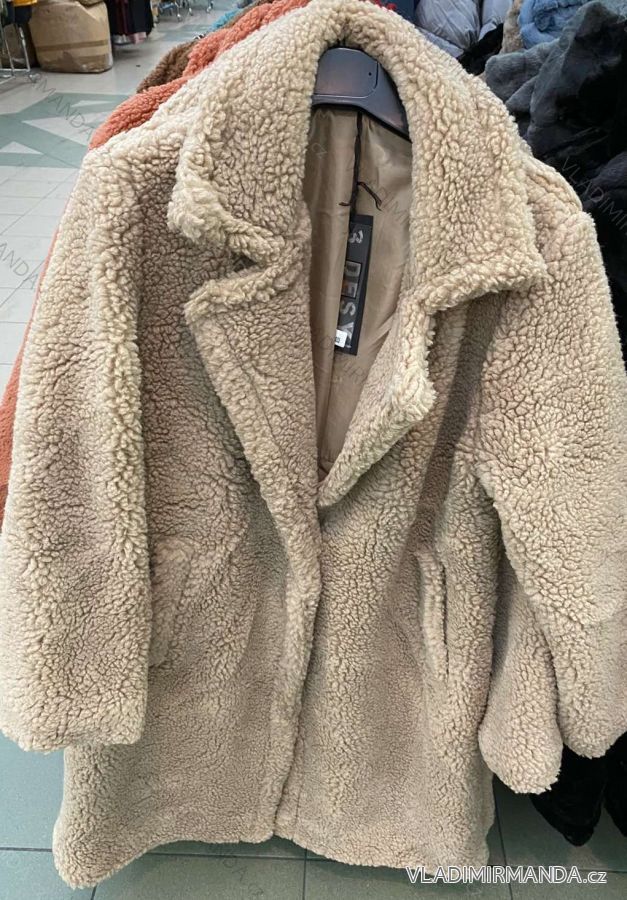 Kabát kožúšok teddy dlhý rukáv dámsky (S / M ONE SIZE) TALIANSKÁ MÓDA IMWD21130