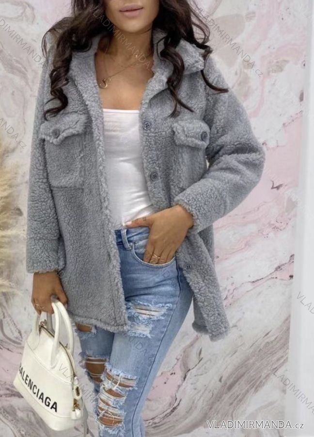 TOVAR (120725) > oblečenie dámske (82091) > Bundy, kabáty, vesty a saka (8838) > Kabát kožúšok teddy dlhý rukáv dámsky (S / M ONE SIZE) TALIANSKÁ MÓDA IMWH21044