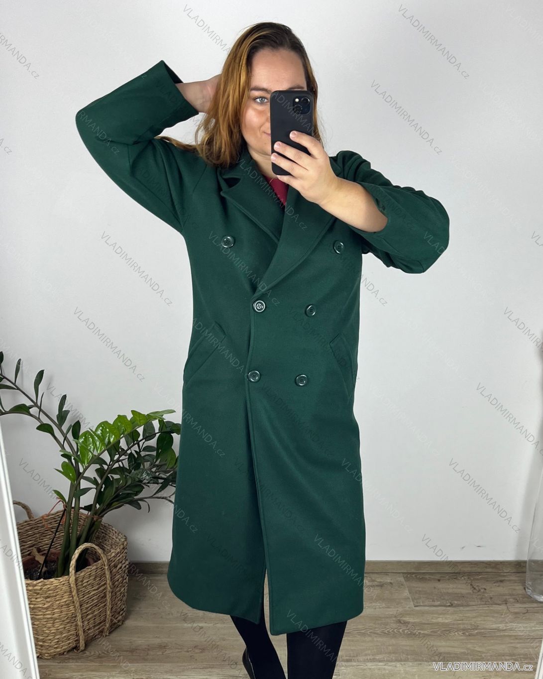 TOVAR (121294) > oblečenie dámske (82018) > Bundy, kabáty, vesty a saka (8797) > Kabát na gombíky dámsky nadrozměr (48/50 ONE SIZE) TALIANSKA MóDA IM324SILVIA/DR 48/50 tmavo smaragdová