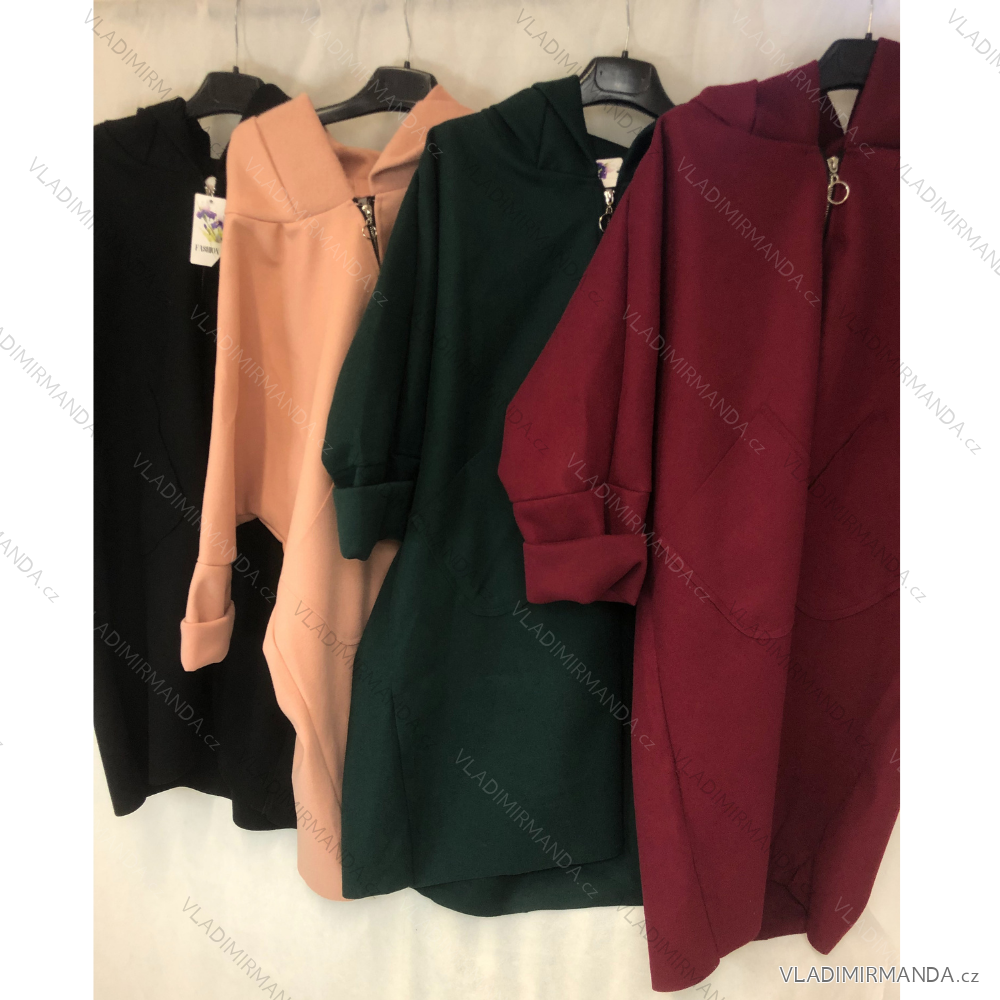 Kabát na zip dlouhý motýlí rukáv flauš s kapucí dámská nadrozměr (3XL/4XL ONE SIZE) ITALSKÁ MÓDA IM4212549