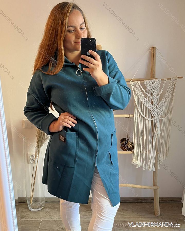 Kabát na zips s kapucňou dlhý rukáv dámský nadrozmer (2XL/3XL ONE SIZE) TALIANSKA MÓDA IMC22766/DU 2XL/3XL tmavo šedá