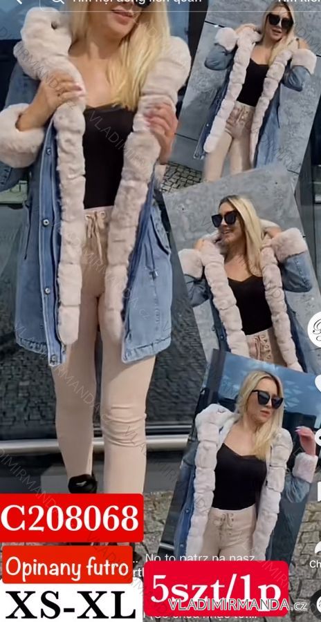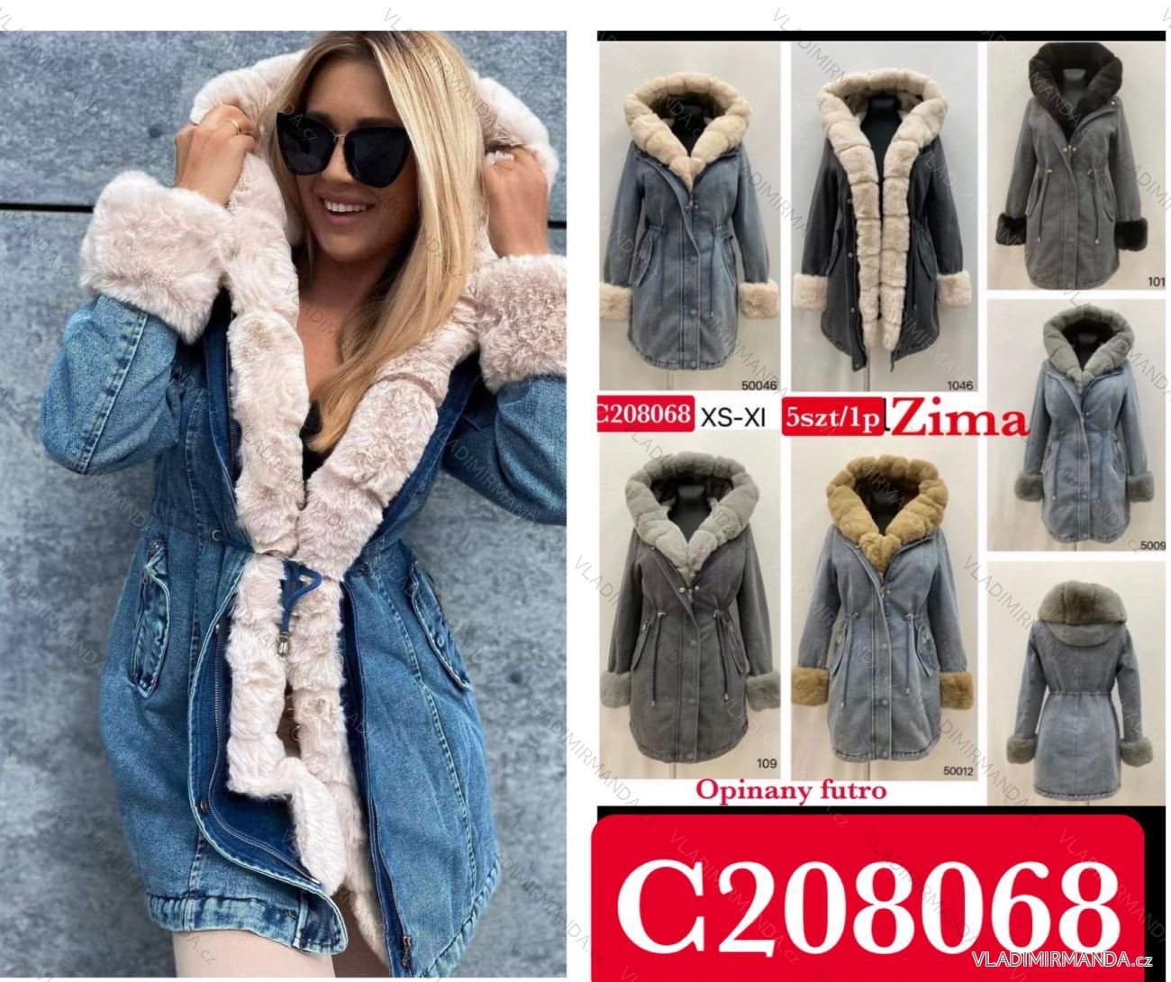 TOVAR (120523) > oblečenie dámske (81890) > Bundy, kabáty, vesty a saka (8818) > Kabát riflový s kožúškom s kapucňou dámsky (XS-XL) POLSKÁ MÓDA PMW23C208068