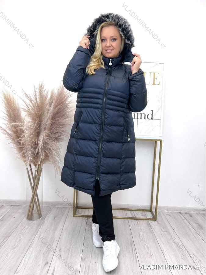 Kabát s kapucí dlouhý rukáv dámský nadrozměr (50-52, 54-56) TURECKá MóDA TMLBL223563