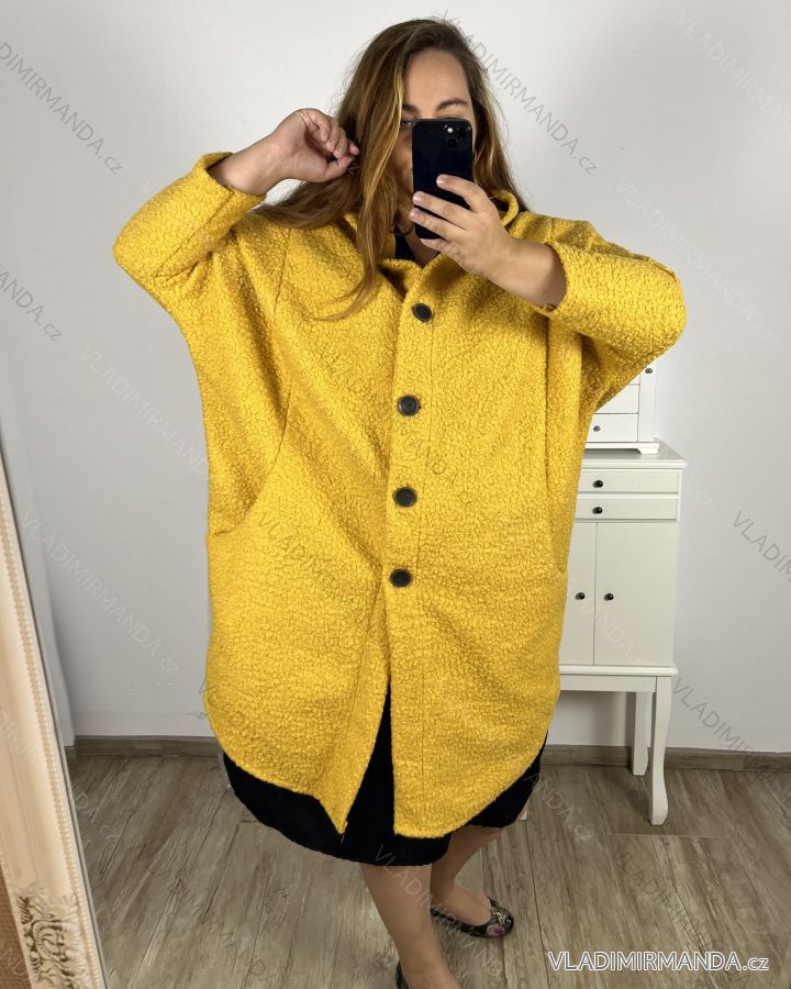 TOVAR (120750) > oblečenie dámske (81833) > Bundy, kabáty, vesty a saka (8831) > Kabát s kapucí teplý dámsky nadrozměr (4XL/5XL ONE SIZE) Talianska móda IM823BELLA/DU 4XL / 5XL žltá