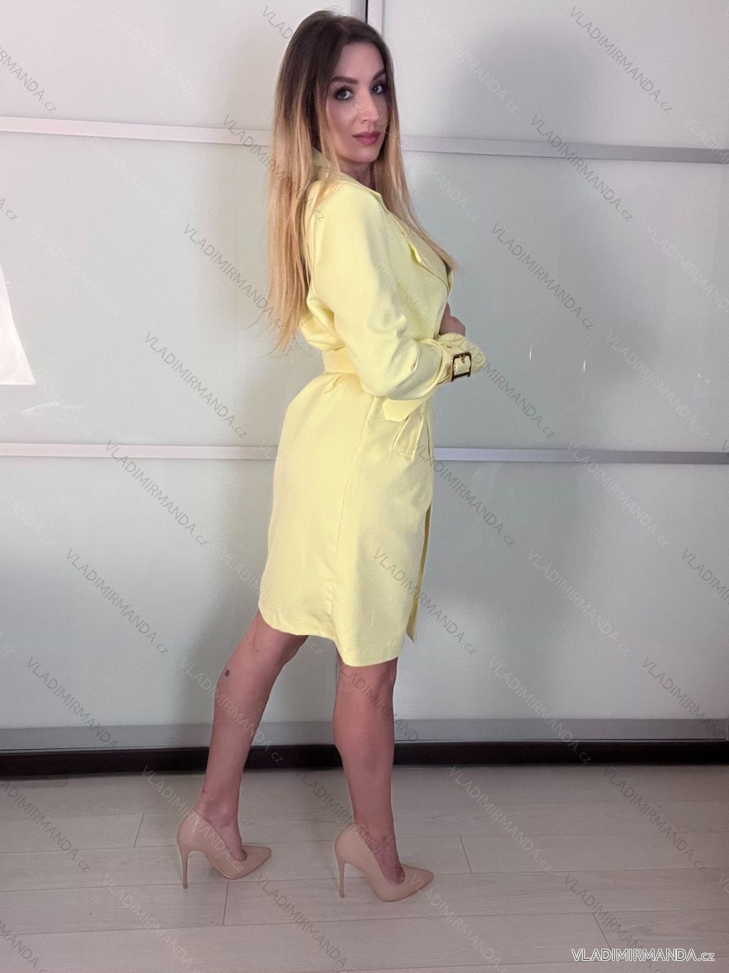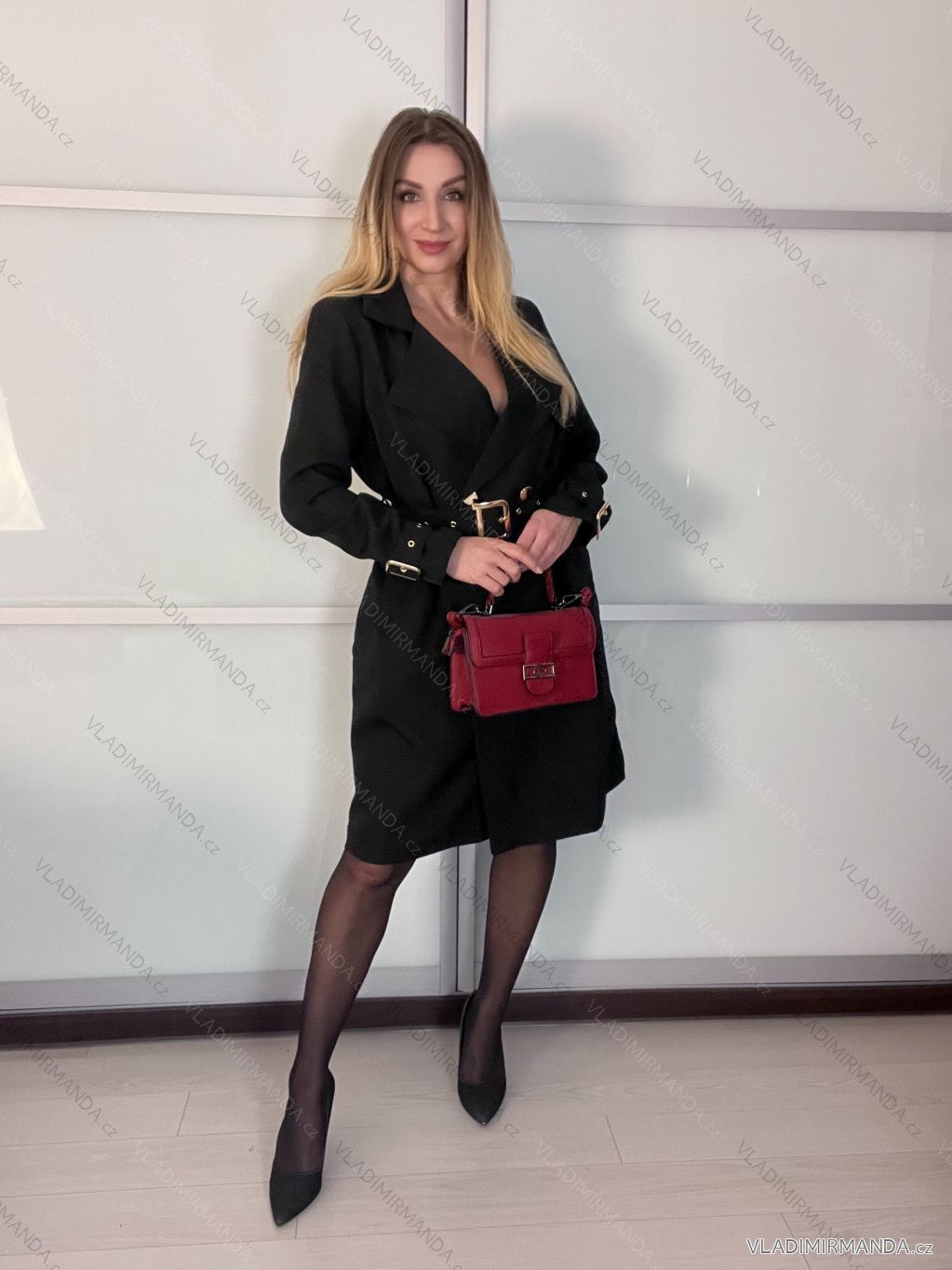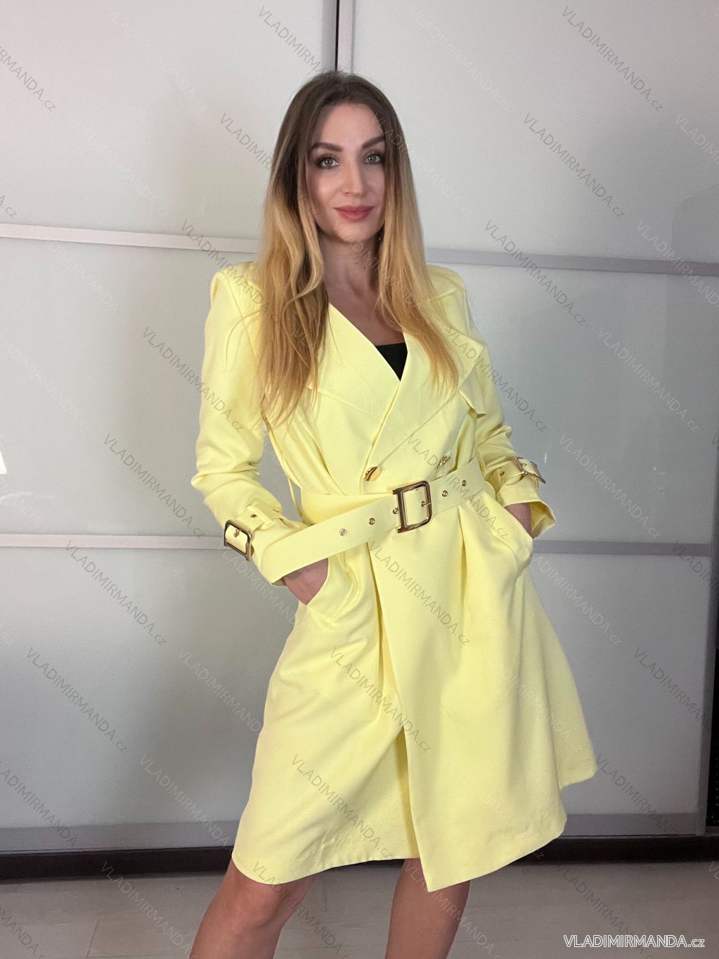 Kabát s opaskom dlhý rukáv dámsky (S/M/L ONE SIZE) TALIANSKA MÓDA IMSM261121