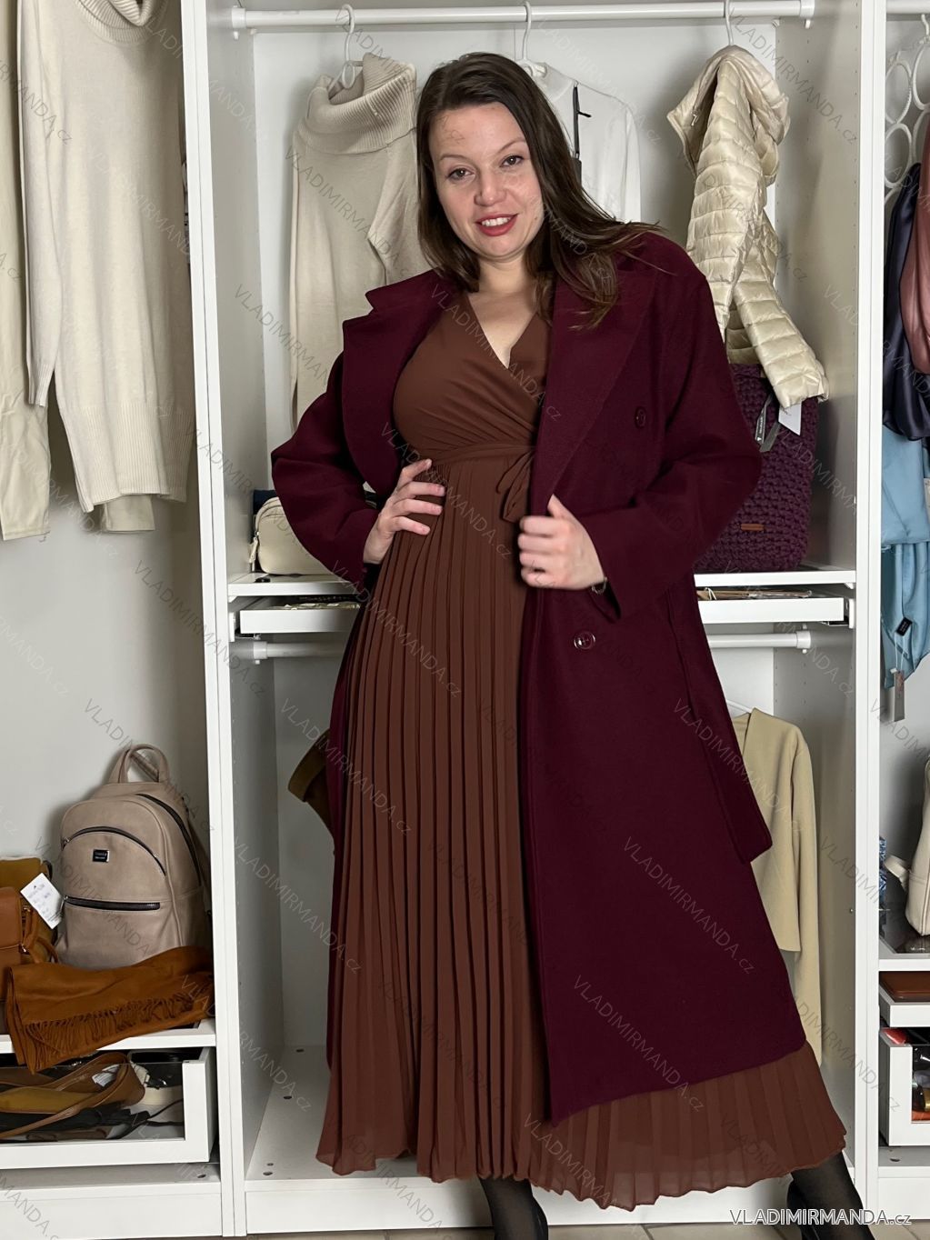TOVAR (119438) > oblečenie dámske (80788) > Bundy, kabáty, vesty a saka (8657) > kabáty dámske (3523) > kabáty zimné (1399) > Kabát zimný dlhý rukáv dámsky (S/M/L ONE SIZE) TALIANSKA MÓDA IMD25527/DU S/M/L vínová
