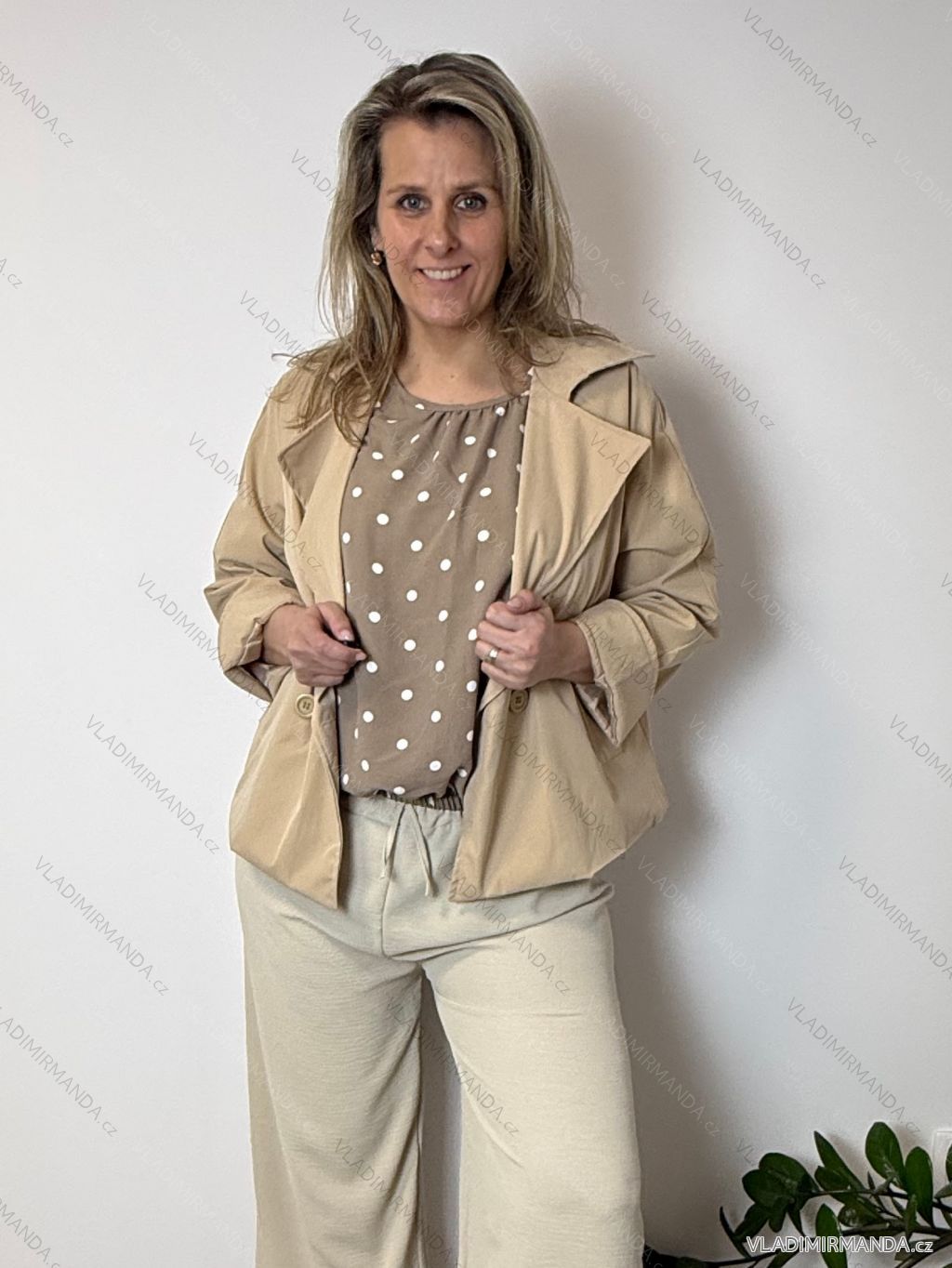 TOVAR (120811) > oblečenie dámske (81893) > Bundy, kabáty, vesty a saka (8840) > kabáty dámske (3600) > Kabáty jarná-jesenná (1639) > Kabátek oversize jarní dlhý rukáv dámsky nadrozměr NINA(42/44/46 ONE SIZE) TALIANSKA MÓDA IMSM260005