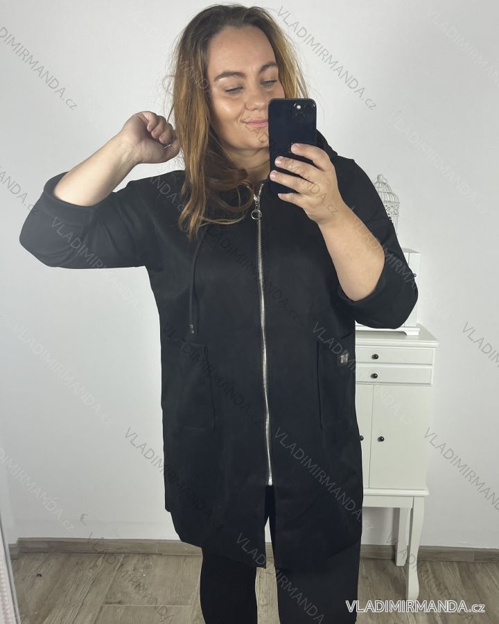 Kabátek s kapucí na zip dlhý rukáv dámsky nadrozměr (2XL/3XL ONE SIZE) TALIANSKA MODA IM423MIRANDA/DU 2XL/3XL hnedá