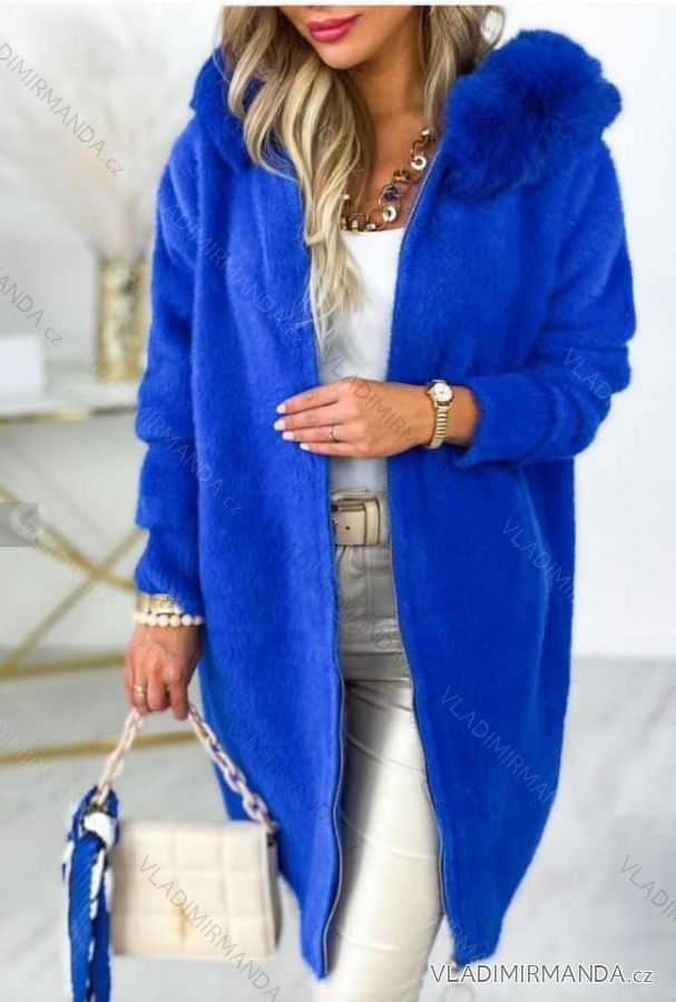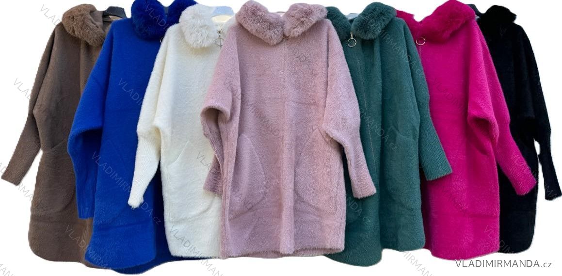 Kabátik alpaka s kožíškem dlouhý rukáv dámsky (S/M/L ONE SIZE) TALIANSKÁ MÓDA IMD23776