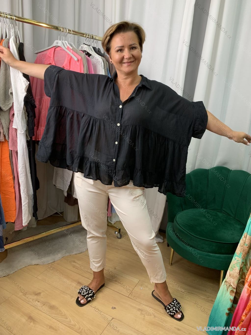 TOVAR (120887) > oblečenie dámske (81951) > Košele a blúzky (3802) > košele klasik (1496) > Košeľa 3/4 dlhý rukáv dámska nadrozmer (42/44/46 ONE SIZE) TALIANSKA MÓDA IMWEC25044