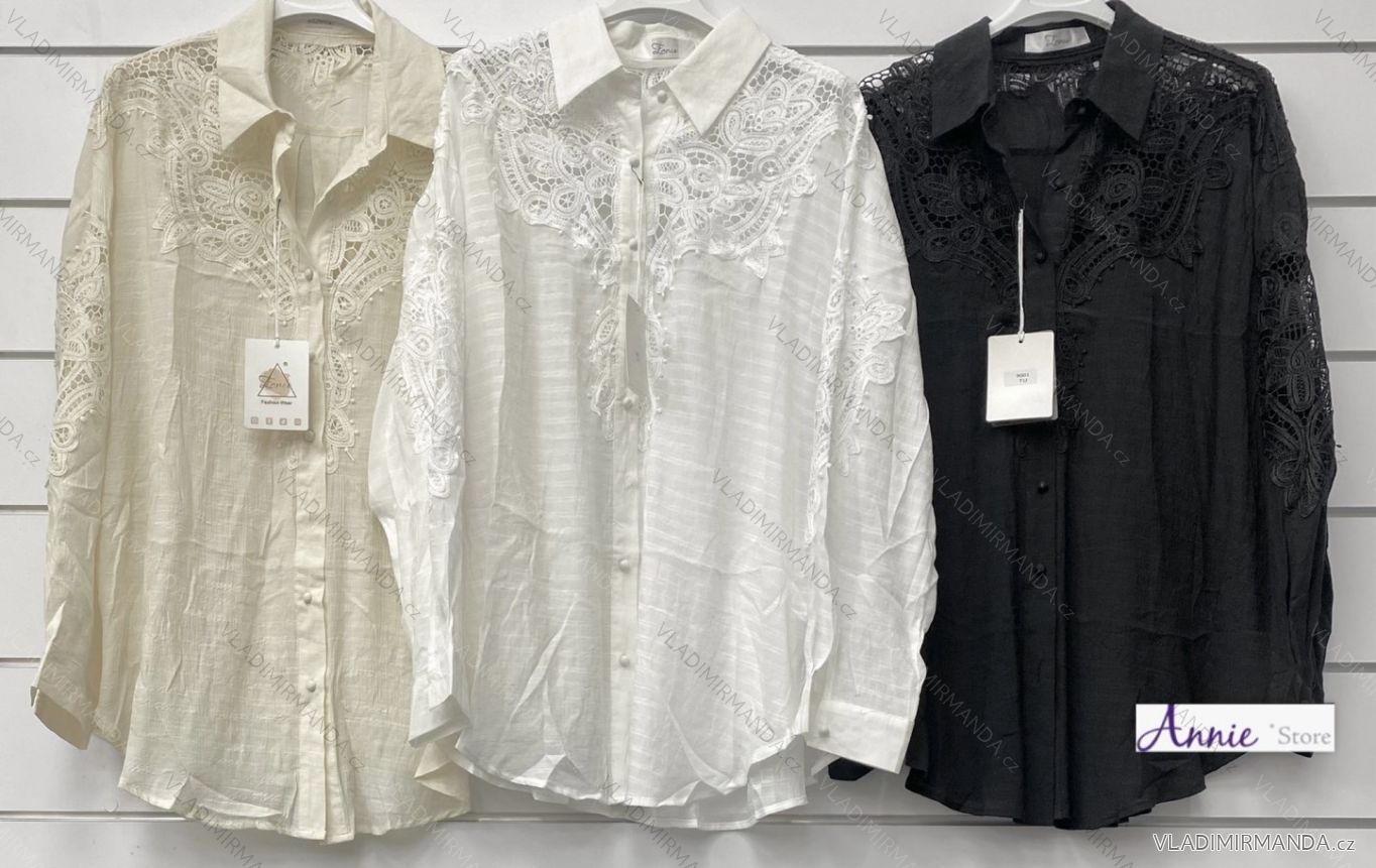 Košeľa dlhý rukáv s čipkou dámska (S/M ONE SIZE) TALIANSKA MÓDA IMWDA24338