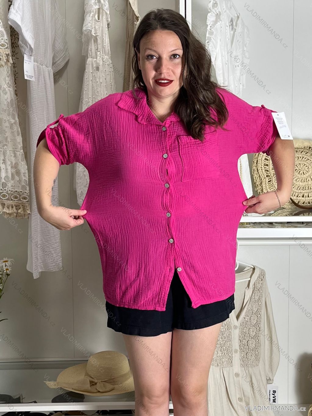 TOVAR (119518) > oblečenie dámske (80858) > Košele a blúzky (3718) > košele klasik (1468) > Košeľa mušelín dlhý rukáv oversize dámska nadrozmer HANNAH (S/M/L ONE SIZE) TALIANSKA MÓDA IMD25138