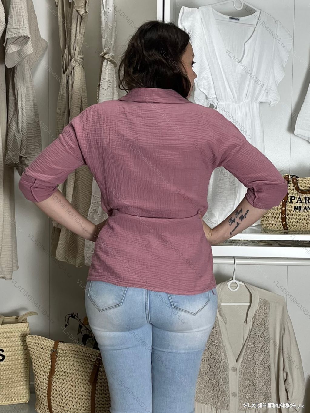 Košeľa mušelín dlhý rukáv oversize dámska nadrozmer HANNAH (S/M/L ONE SIZE) TALIANSKA MÓDA IMD25138