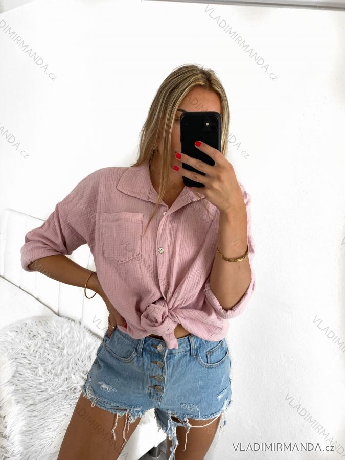 Košeľa mušelínová dlhý rukáv dámska nadrozmer (S/M/L/XL/2XL ONE SIZE) TALIANSKA MÓDA IMC23271/DU