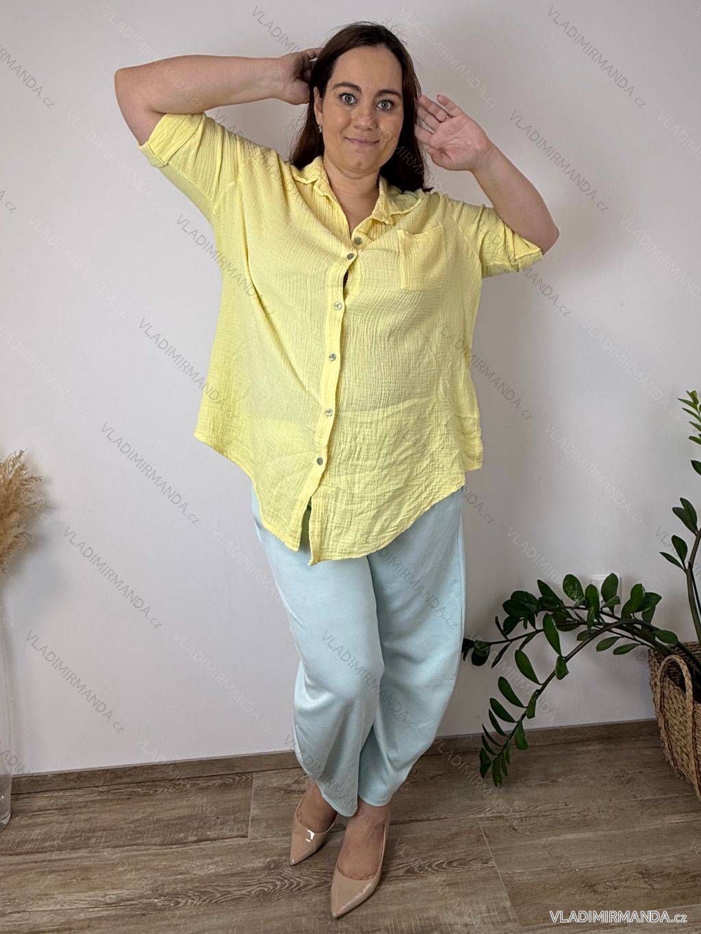 TOVAR (120877) > oblečenie dámske (81944) > Košele a blúzky (3802) > košele klasik (1496) > Košeľa mušelínová dlhý rukáv dámska nadrozměr ADIGE (50/52/54 ONE SIZE) TALIANSKA MÓDA IM424299/DU 50/52/54 žlutá