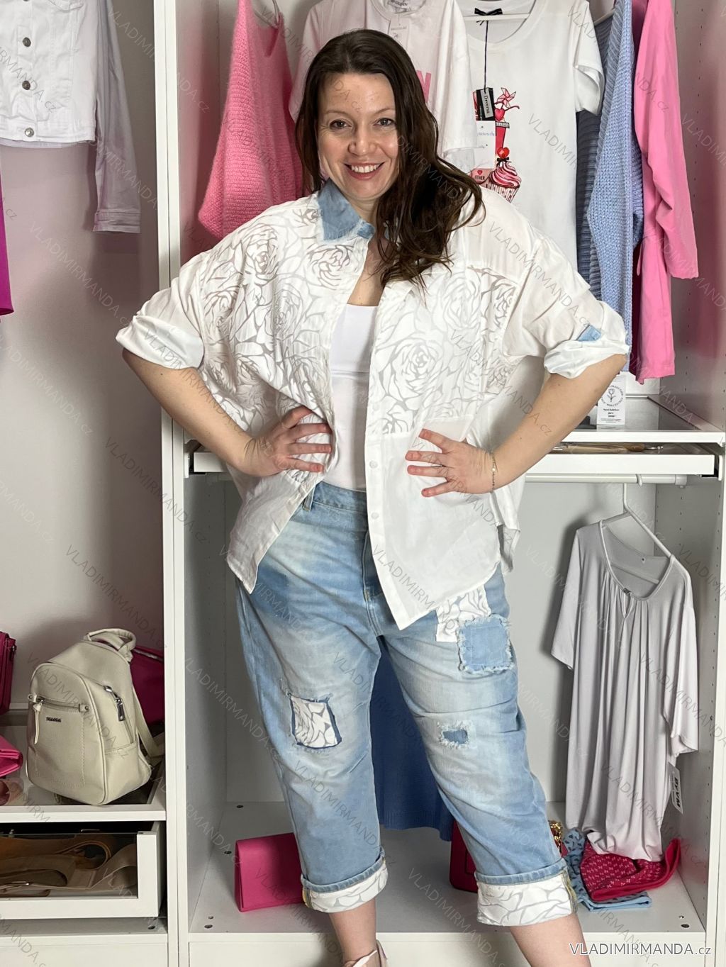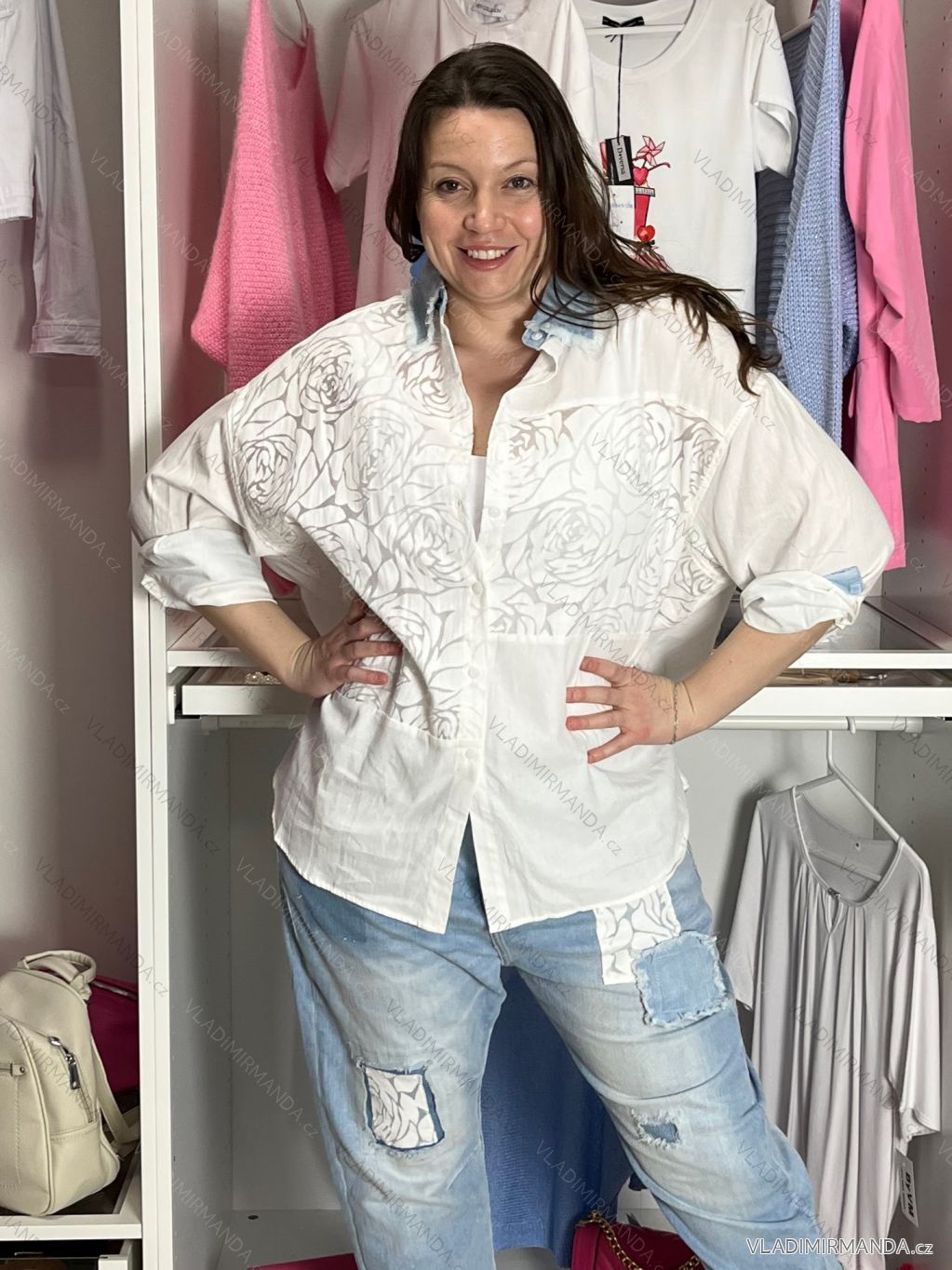 TOVAR (120623) > oblečenie dámske (81733) > Košele a blúzky (3787) > košele predĺžená (449) > Košeľa predĺžená 3/4 dlhý rukáv dámska nadrozměr (S/M - L/XL) IMPSW26SW5004/DUR L / XL biela