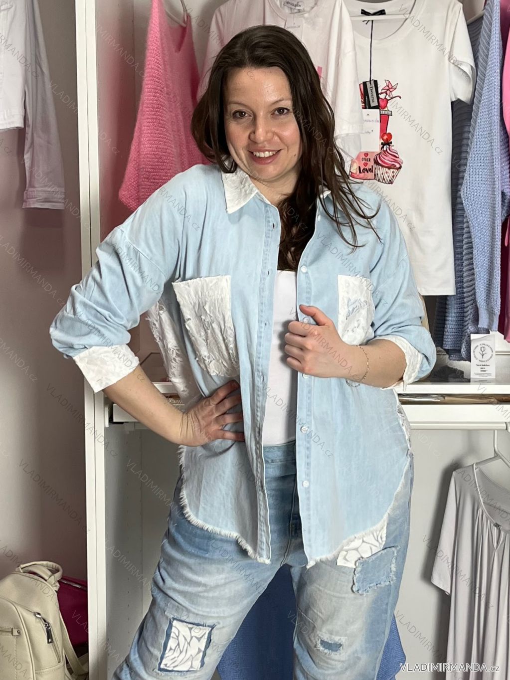 Košeľa predĺžená 3/4 dlhý rukáv dámska nadrozměr (S/M - L/XL) IMPSW26SW5096/DUR S / M modrá