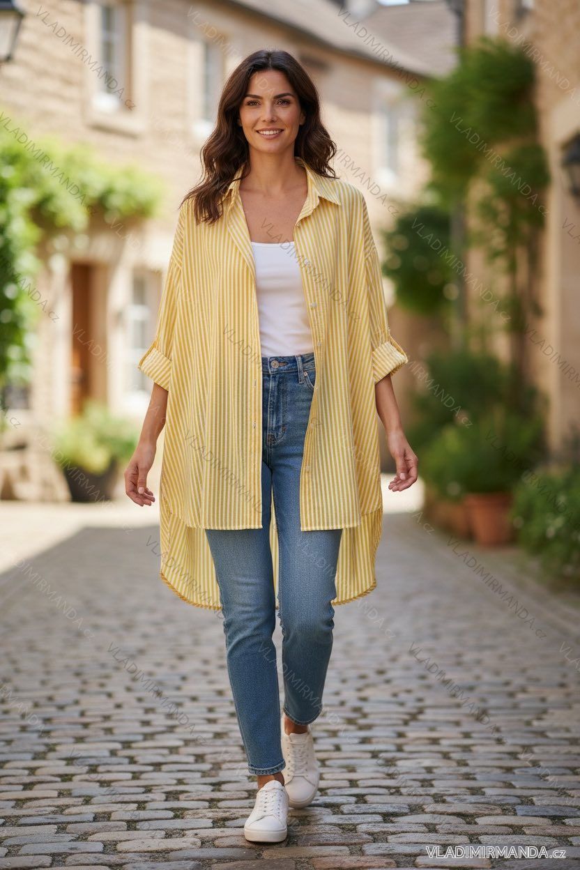 Košile prodloužená 3/4 dlouhý rukáv dámská nadrozměr (48/50/52 ONE SIZE) ITALSKÁ MÓDA IMD26065 žlutá