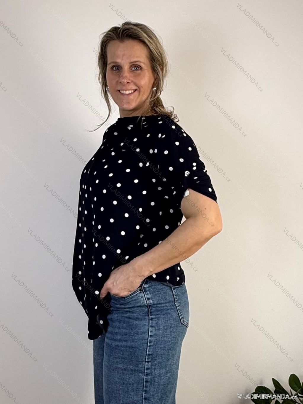 Predĺžená, bodkovaná košeľa s 3/4 rukávom