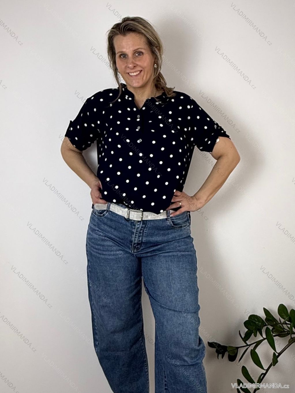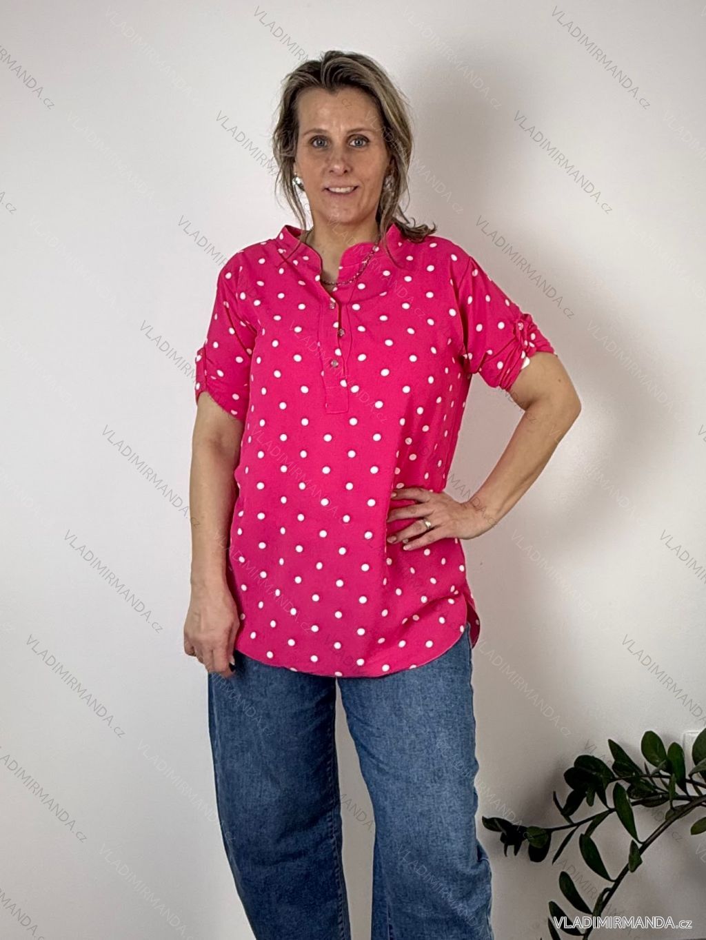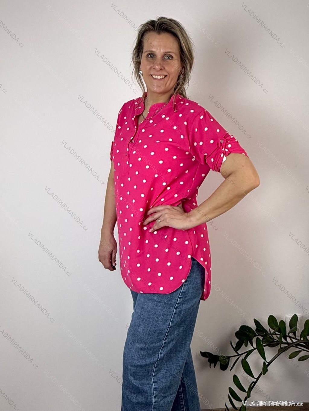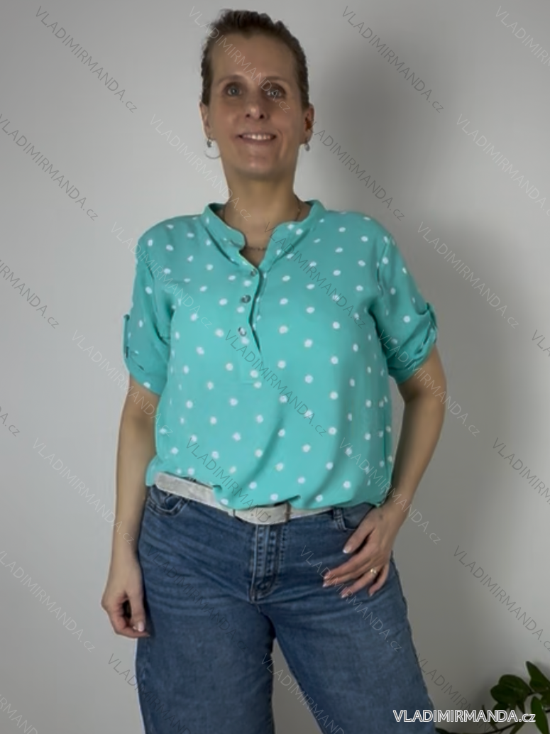 Košeľa predĺžená bodka 3/4 dlhý rukáv dámska nadrozmer HANNA (40/42/44 ONE SIZE) TALIANSKA MÓDA IMC26064/DU tm. béžová 40/42/44