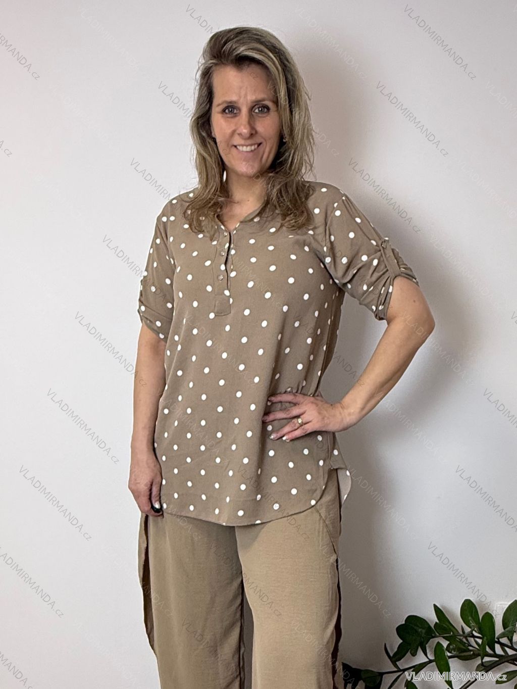 TOVAR (120811) > oblečenie dámske (81893) > Košele a blúzky (3809) > košele predĺžená (453) > Košeľa predĺžená bodka 3/4 dlhý rukáv dámska nadrozmer HANNA (40/42/44 ONE SIZE) TALIANSKA MÓDA IMC26064/DU tm. béžová 40/42/44