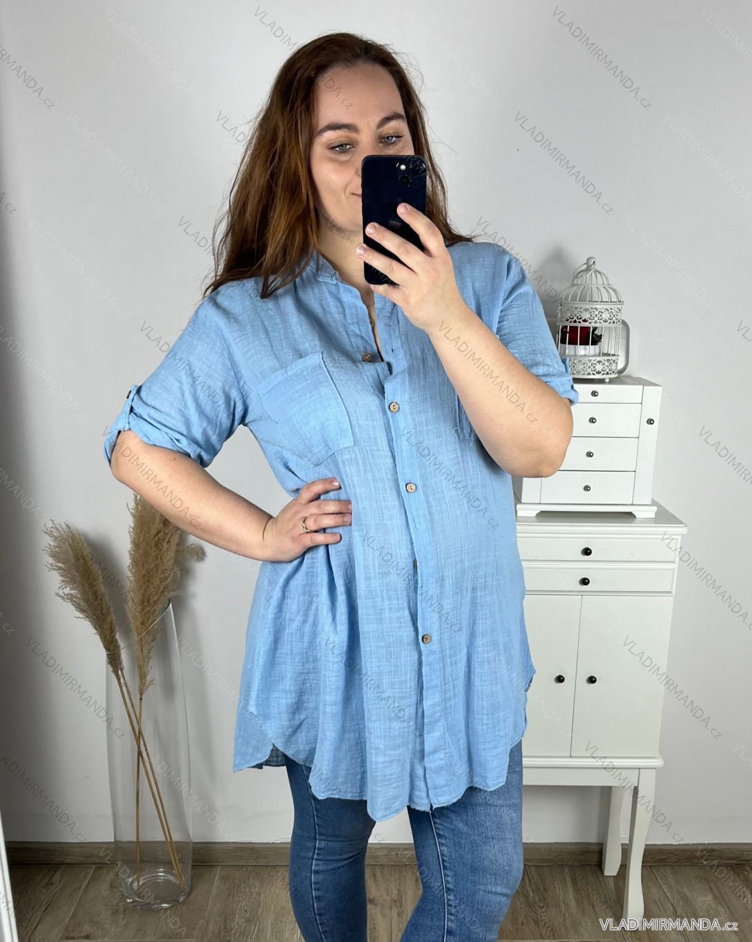 Košeľa predĺžená dlhý rukáv dámske nadrozměr (XL/2XL/3XL ONE SIZE) TALIANSKA MóDA IM323GESHA/DU XL/2XL biela