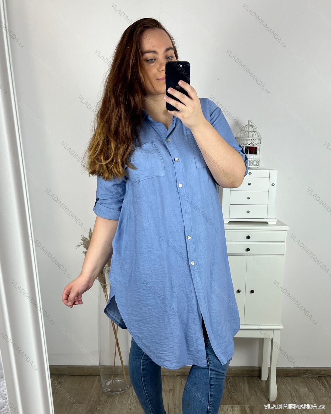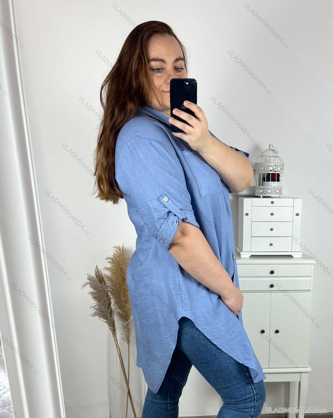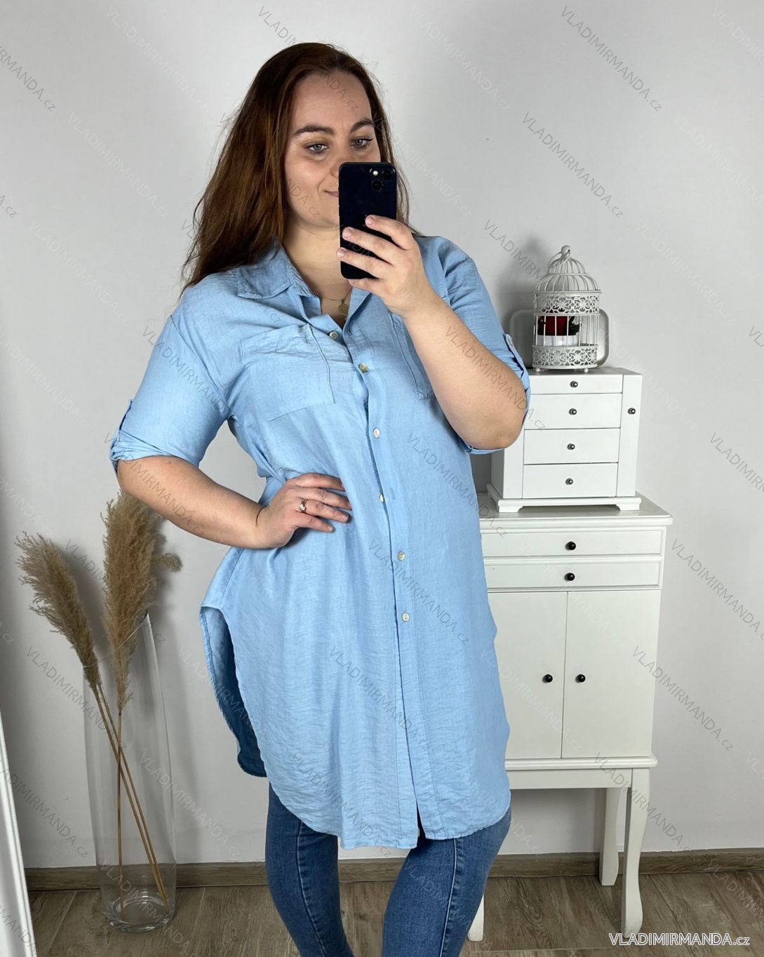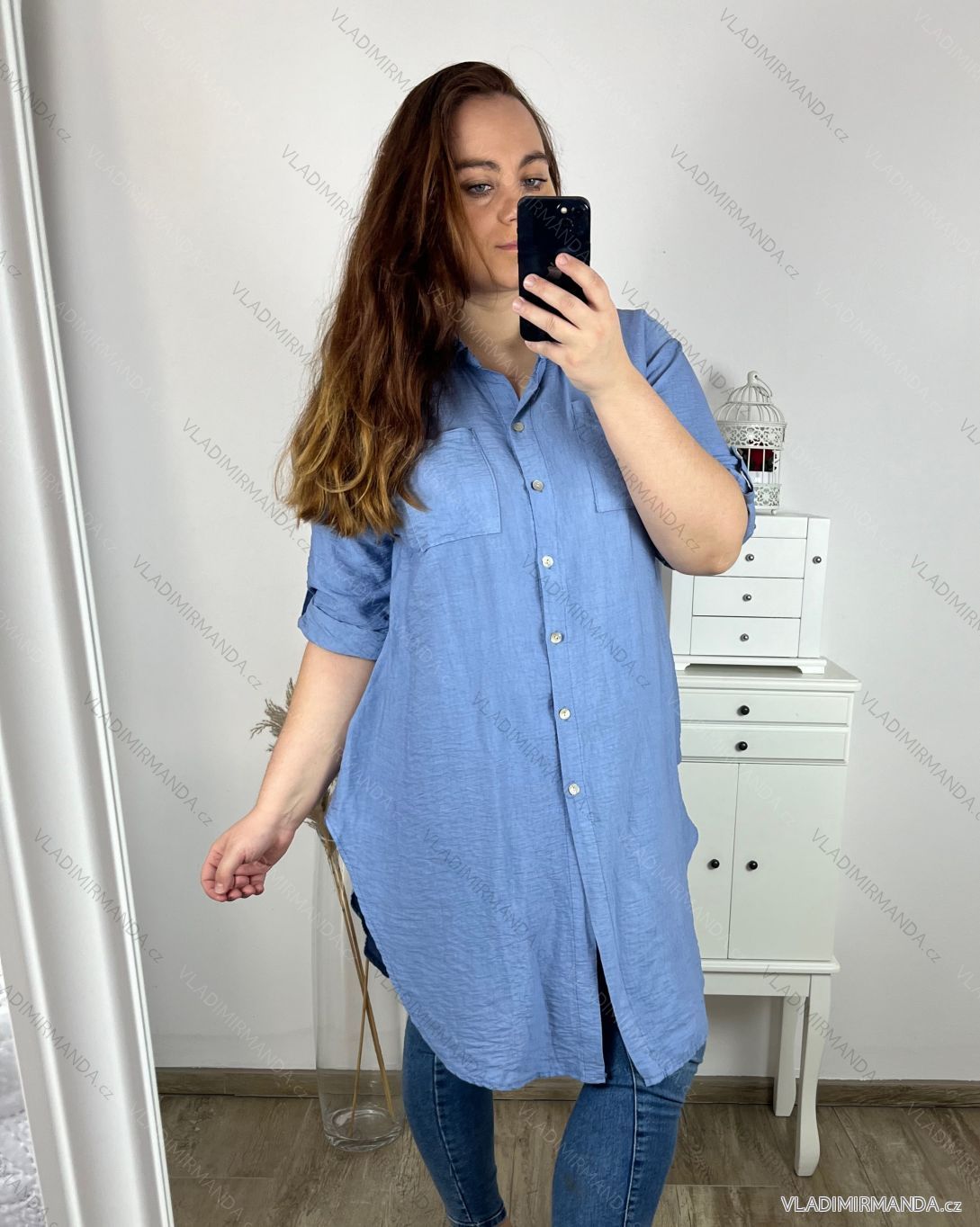 Košeľa predĺžená dlhý rukáv dámska nadrozmer (XL/2XL/3XL ONE SIZE) TALIANSKA MÓDA IMC24BELLA/DR XL/2XL modrá tm.