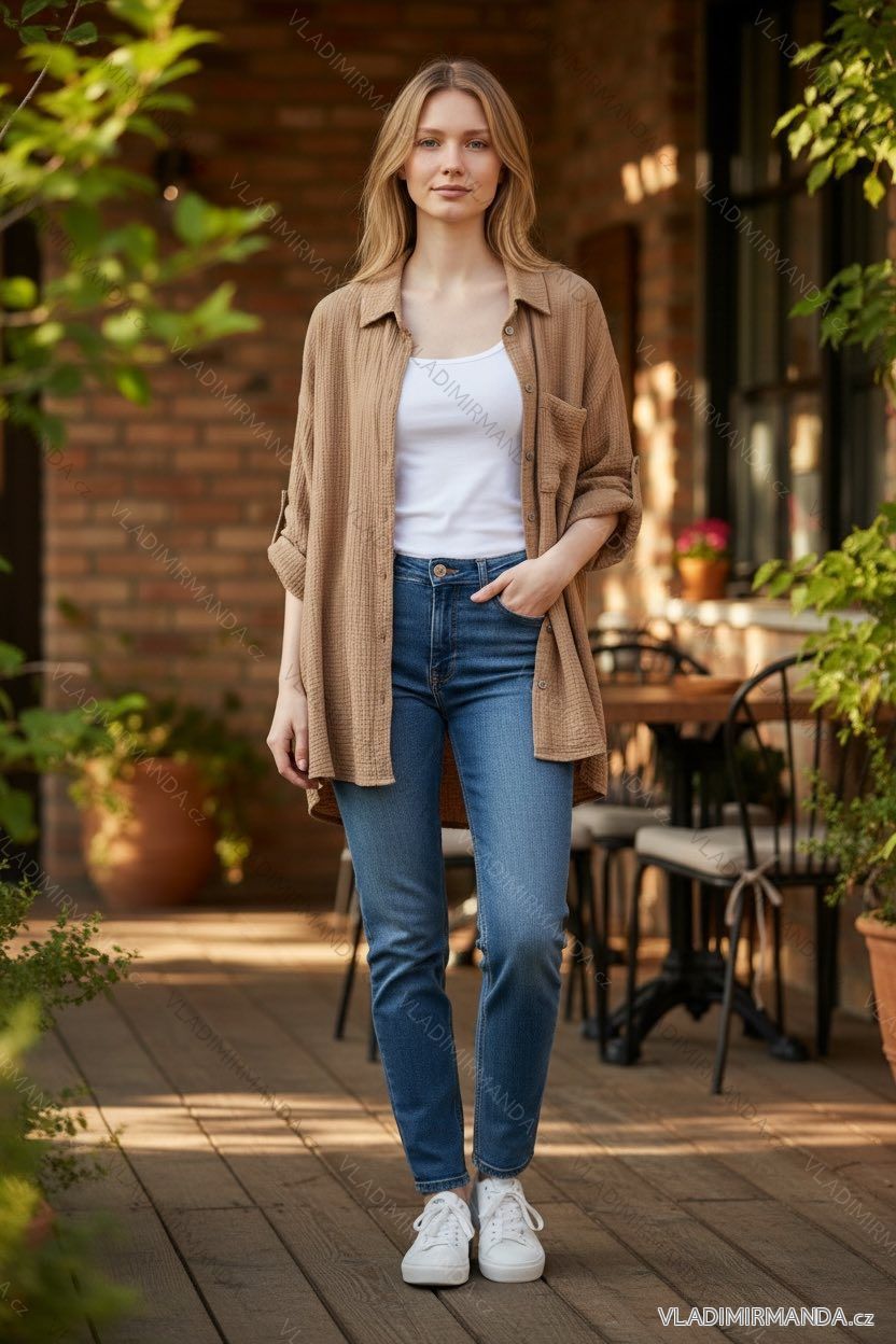 Košeľa predĺžená mušelínová 3/4 dlhý rukáv dámska nadrozmer (46/48/50 ONE SIZE) TALIANSKA MÓDA IMD26023
