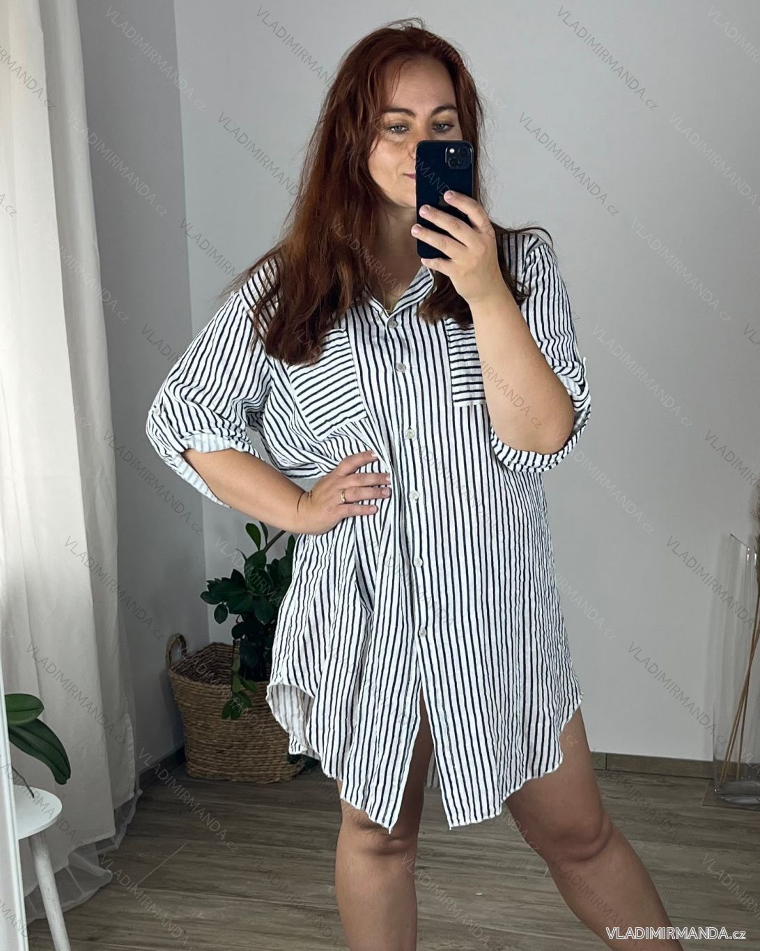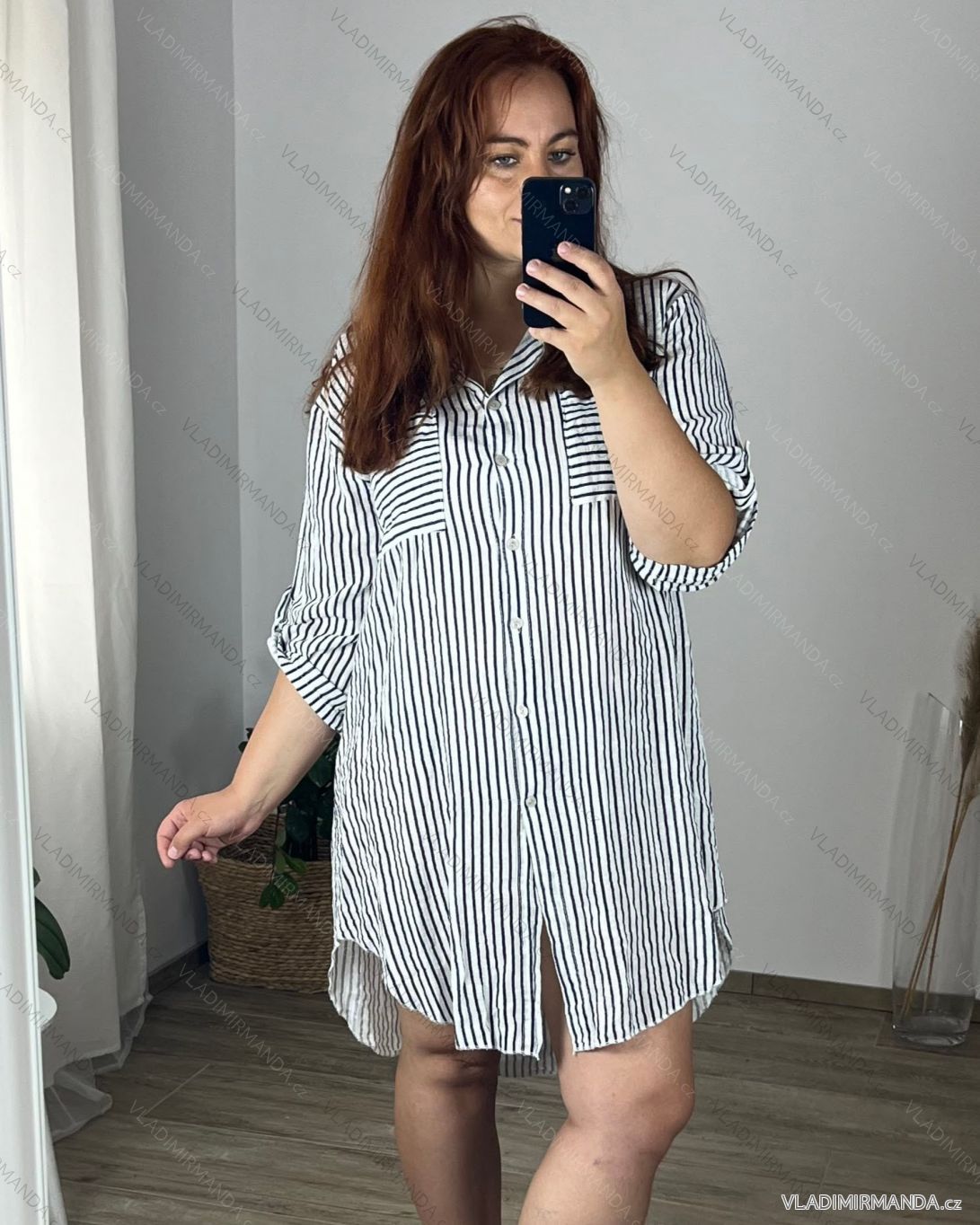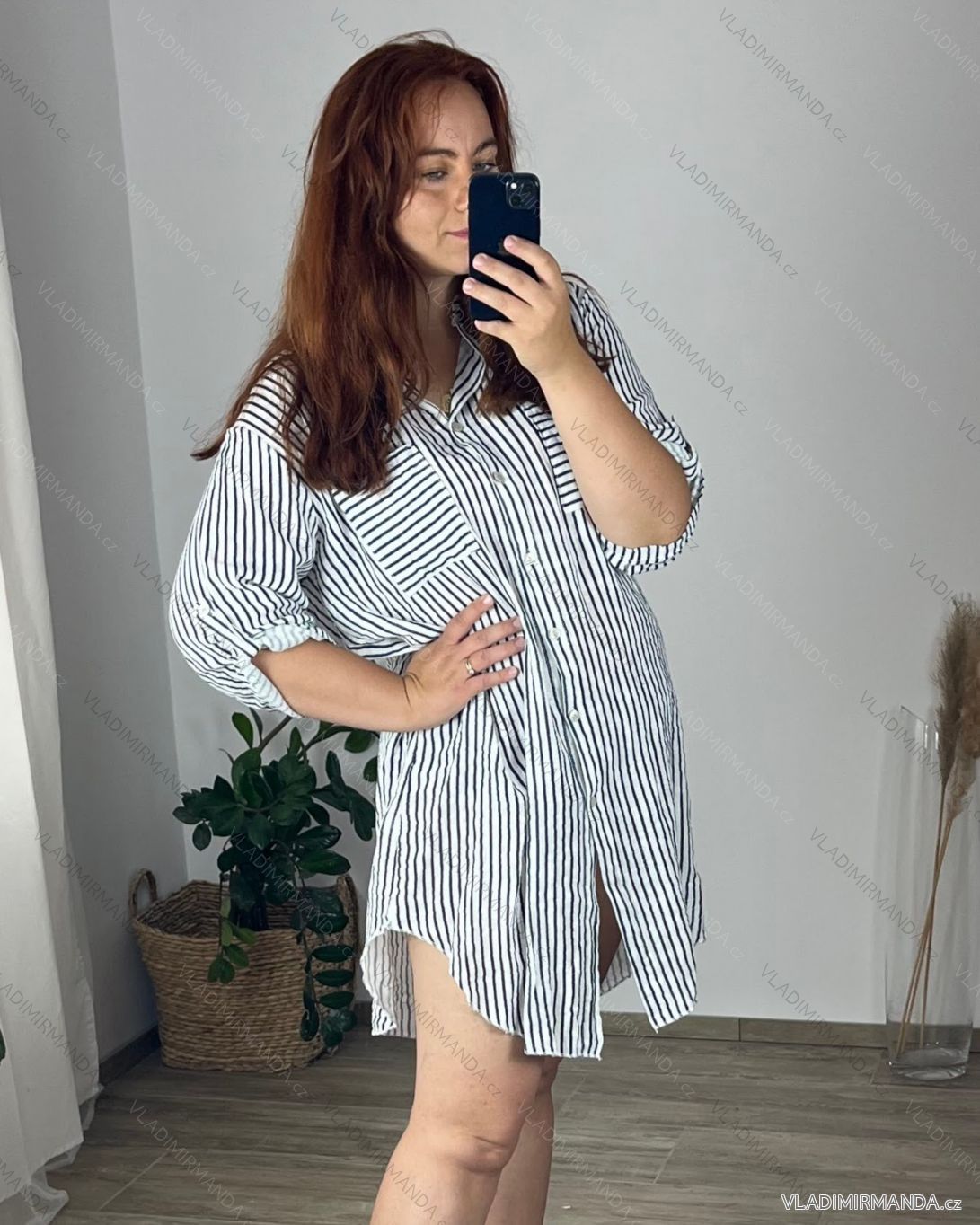 TOVAR (120331) > oblečenie dámske (81510) > Košele a blúzky (3741) > košele klasik (1473) > Košeľová tunika 3/4 krátky rukáv dámska nadrozměr (52/54 ONE SIZE) TALIANSKA MODA IMSM24STRIKE/DR
