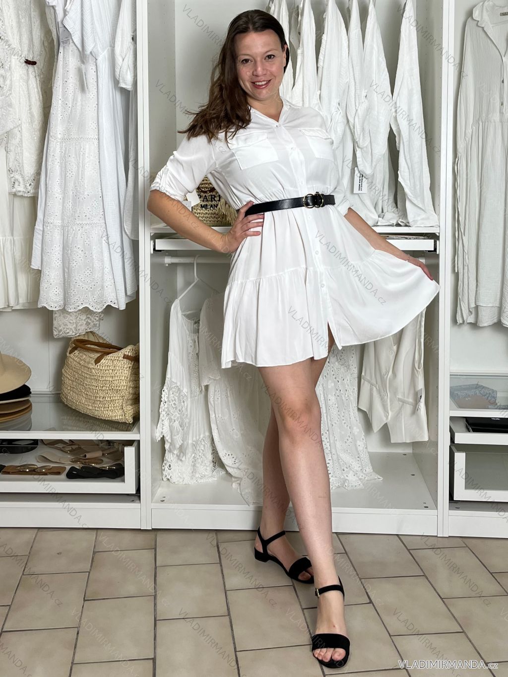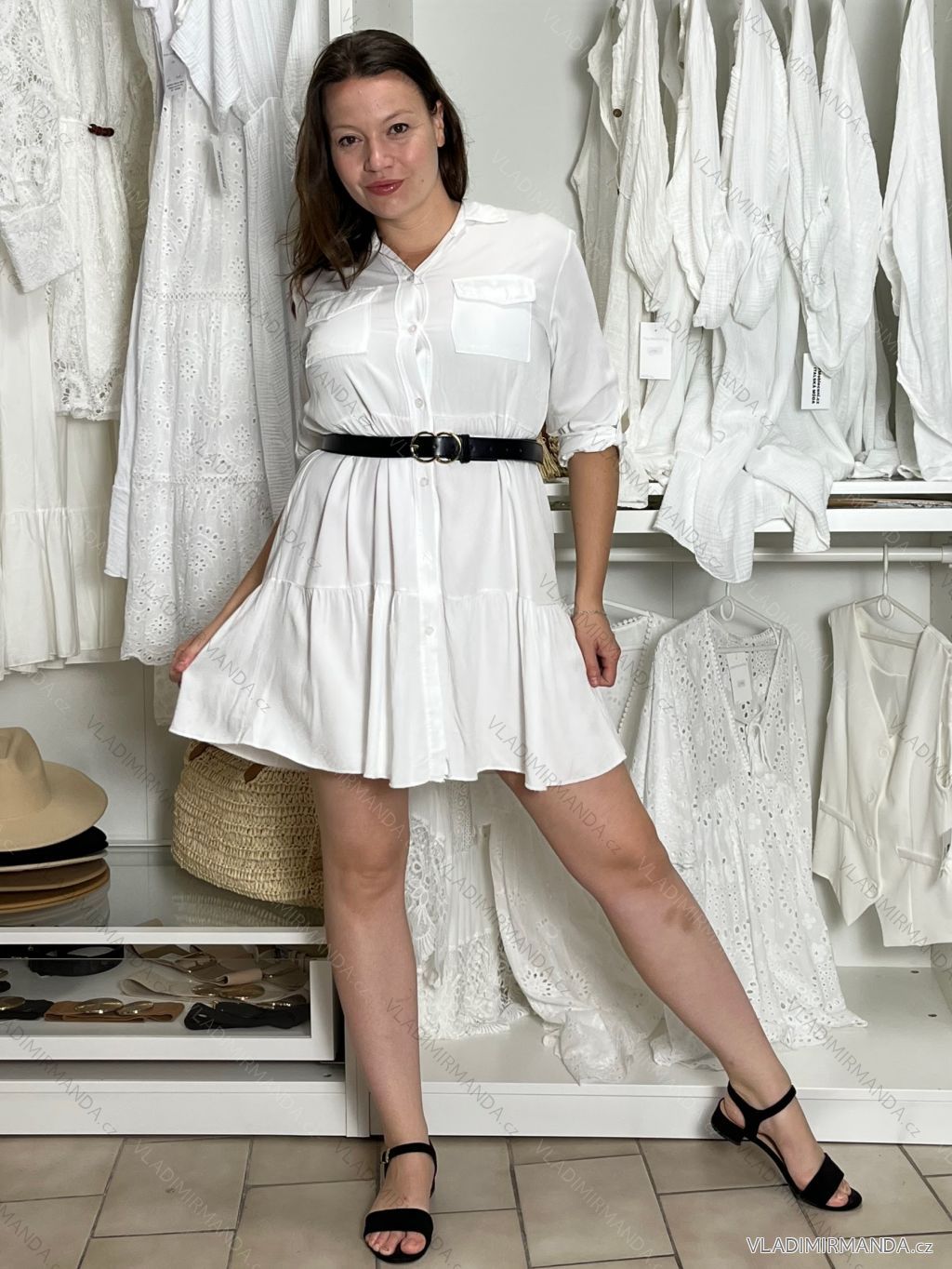 TOVAR (119056) > oblečenie dámske (80496) > šaty (30243) > Košeľové šaty 3/4 rukáv dámska (S/M/L ONE SIZE) TALIANSKA MODA IMSM251135/DU S/M/L biela