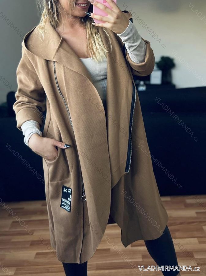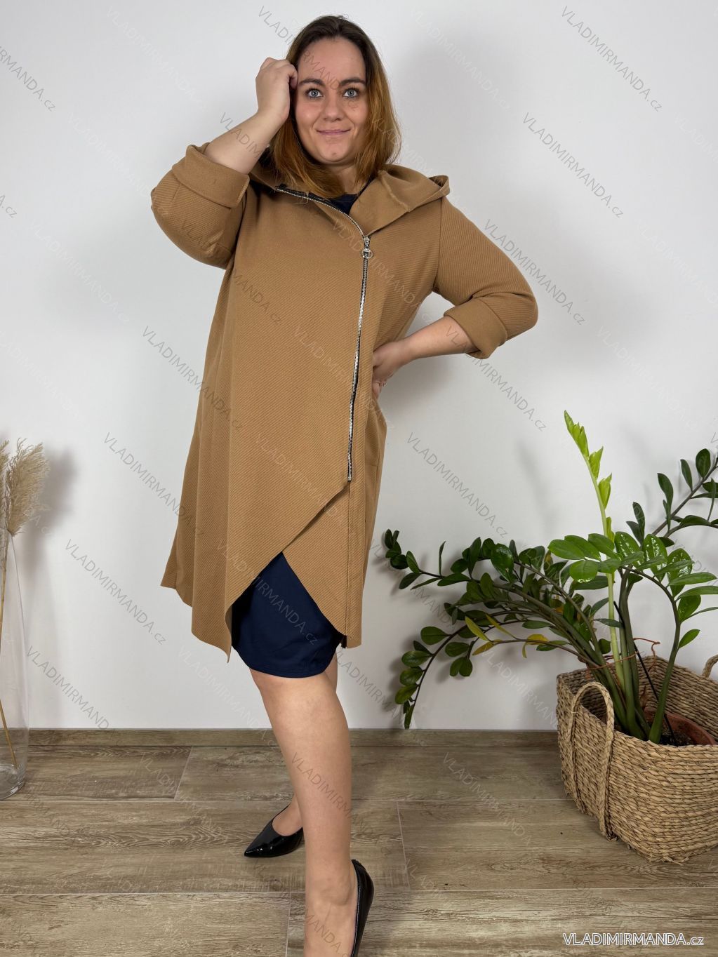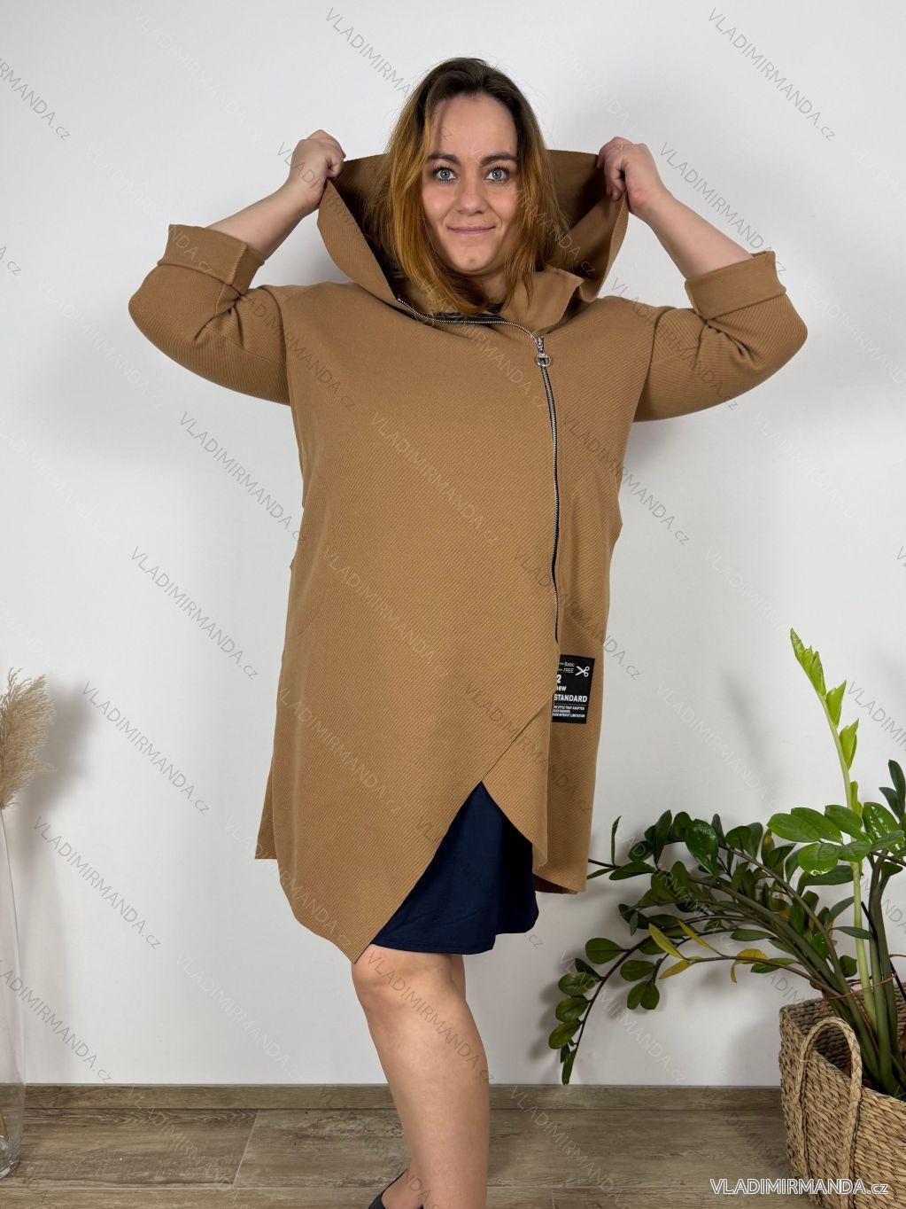 Mikina/kabát na zips s kapucňou dlhý rukáv dámska nadrozmer (50/52/54 ONE SIZE) TALIANSKA MÓDA IMD23669