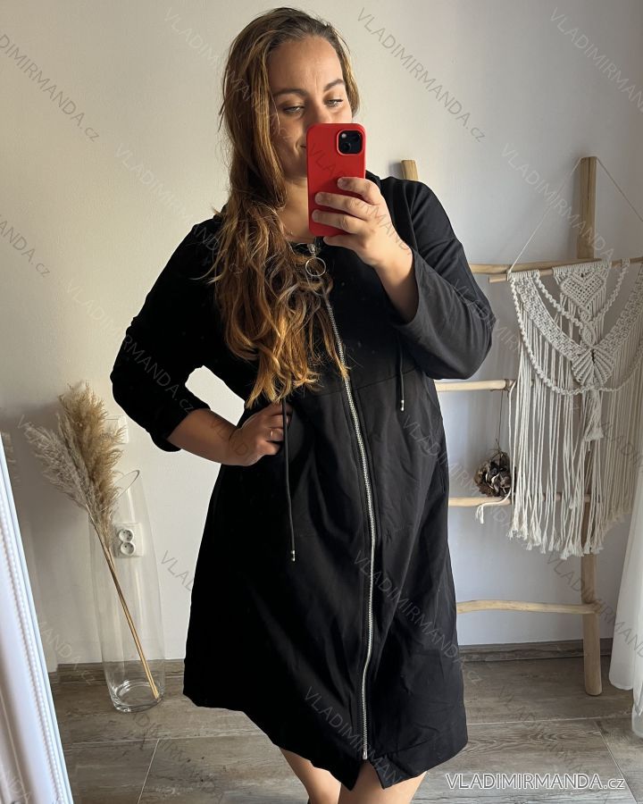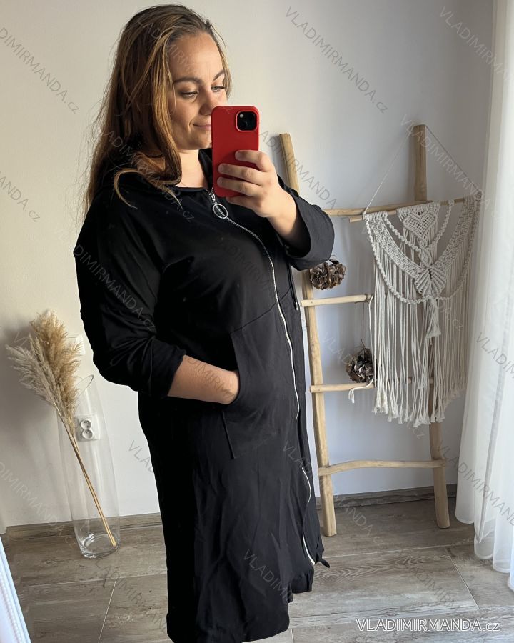 Mikina na zips s kapucňou dlhý rukáv dámska nadrozmer (2XL/3XL/4XL ONE SIZE) TALIANSKA MóDA IM423HAHNNA/DU 3XL / 4XL čierna