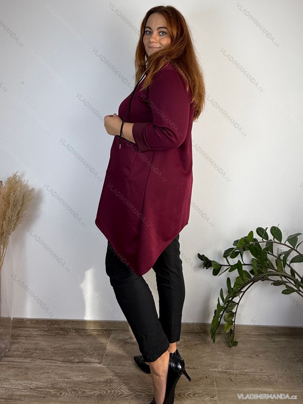 Mikina na zips s kapucňou dlhý rukáv dámska nadrozměr LAJLA (48/50/52 ONE SIZE) TALIANSKA MÓDA IMPOZ253107/DUR čierna