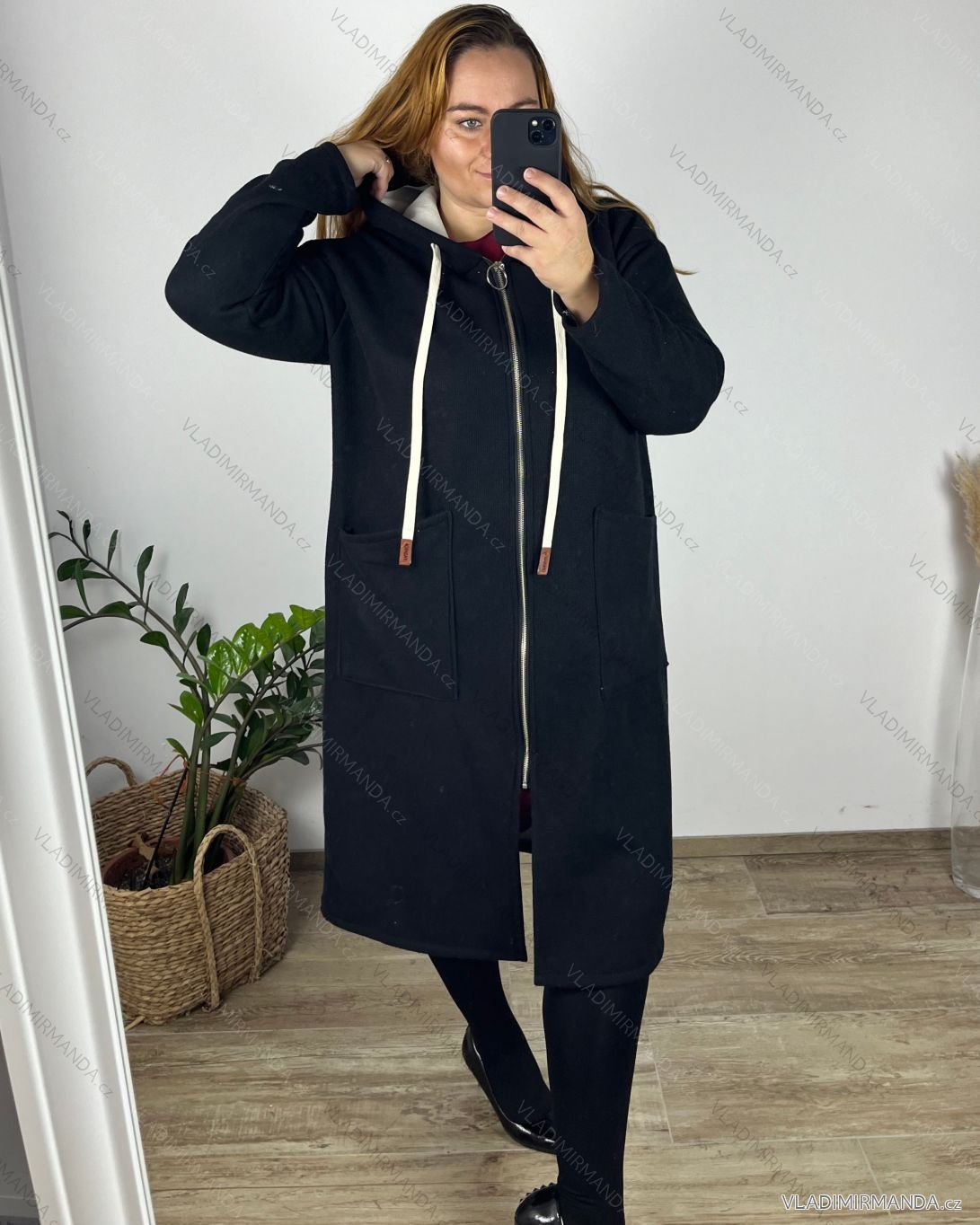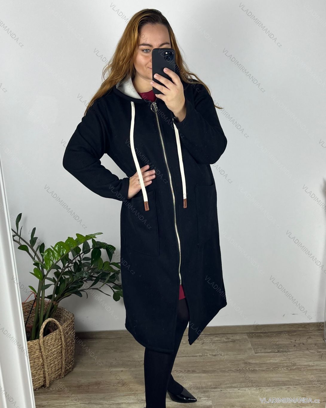 TOVAR (125115) > Nadmerné veľkosti (13882) > mikiny (663) > Mikina teplá dlouhá s kapucňou na zips dlhý rukáv dámska nadrozmer (52/54/56 ONE SIZE) TALIANSKA MÓDA IMSM24JUSTYNA/DU čierna