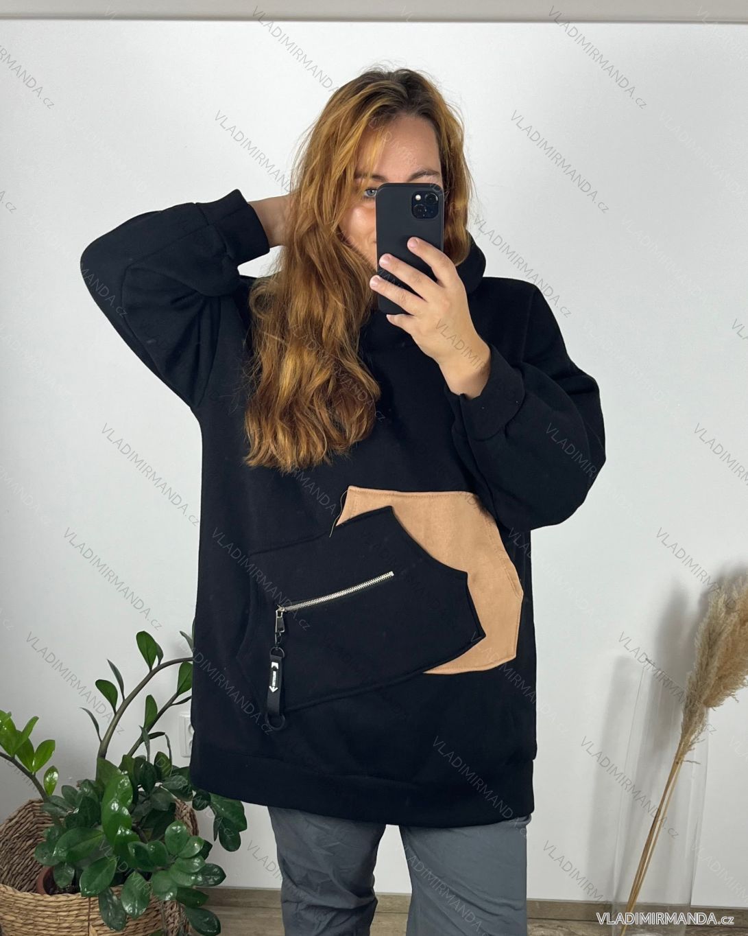 TOVAR (120681) > oblečenie dámske (82131) > Mikiny a cardigany (2570) > Mikina teplá s kapucňou dlhý rukáv dámska (56/58 ONE SIZE) TALIANSKA MÓDA IMD22722/DR 56/58 čierna