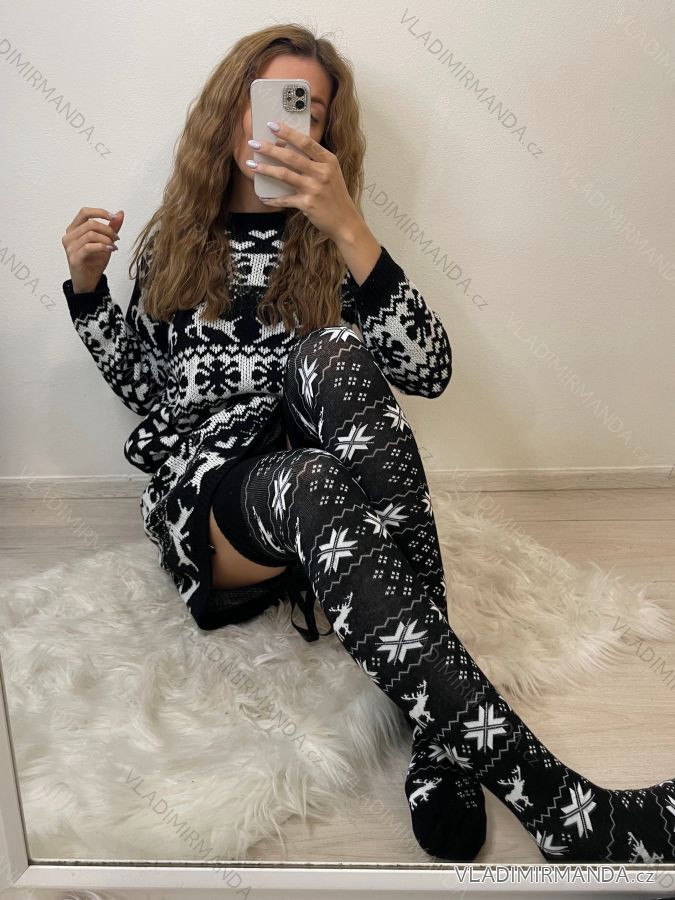 TOVAR (121118) > Nadkolenky vánoční vločky s mašlí dámské (one size ) POLSKÁ MODA DPP22010B/DR