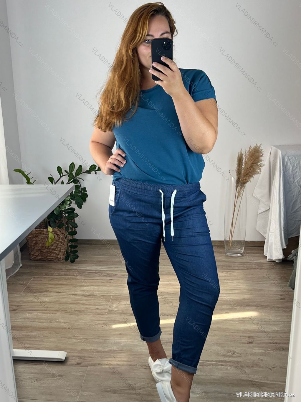 Nohavice bavlněné dámske nadrozmer (XL/2X ONE SIZE) TALIANSKA MóDA IM424LAMIA/DR - tmavo modrá - XL/2XL