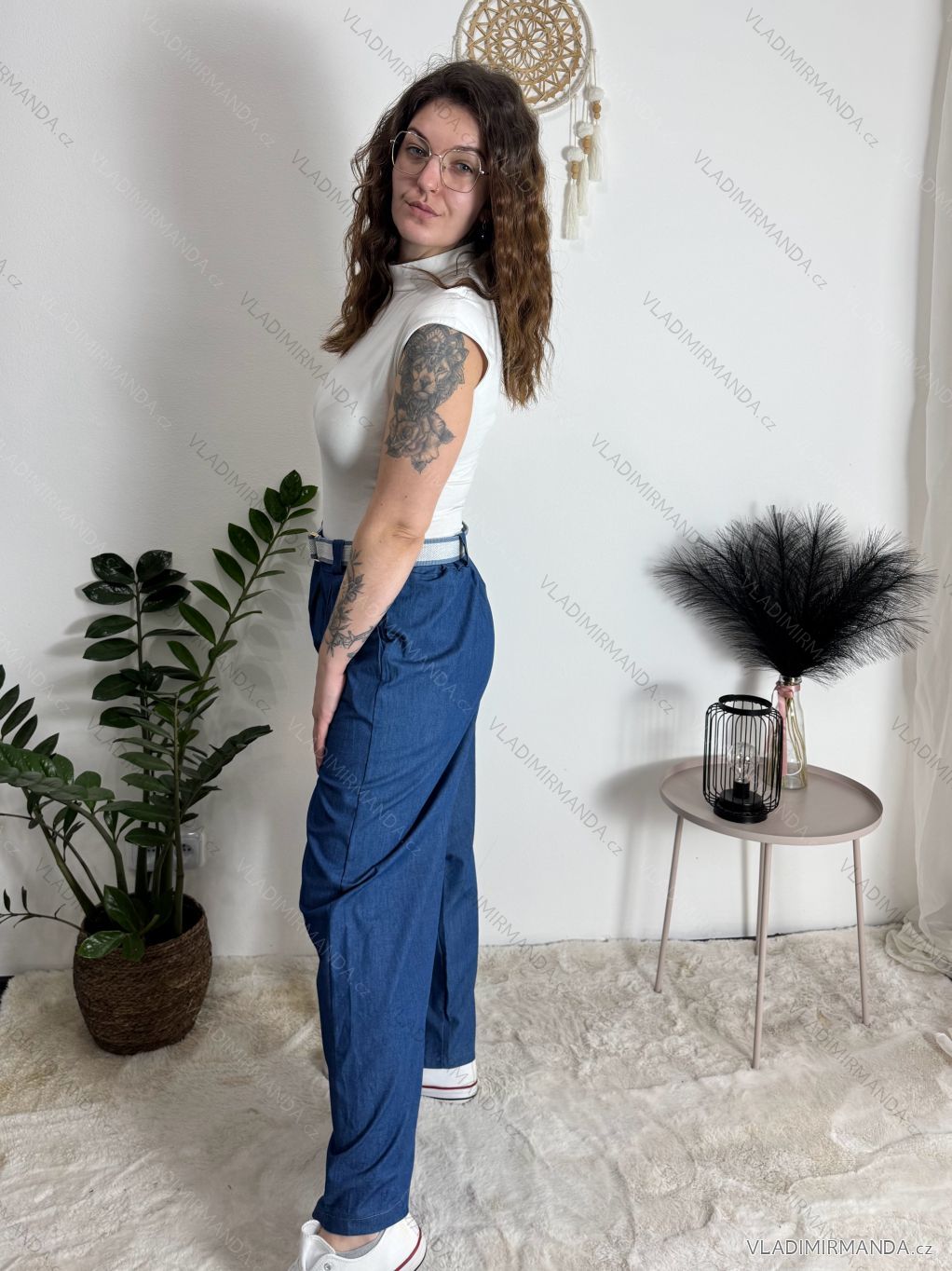 Nohavice dlhé letné riflové s opaskom dámske PALAZZO (S/M/L ONE SIZE) TALIANSKA MÓDA IMWCL251061
