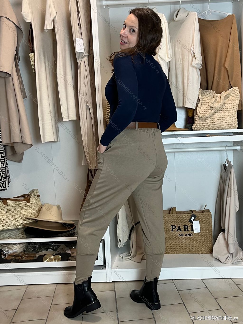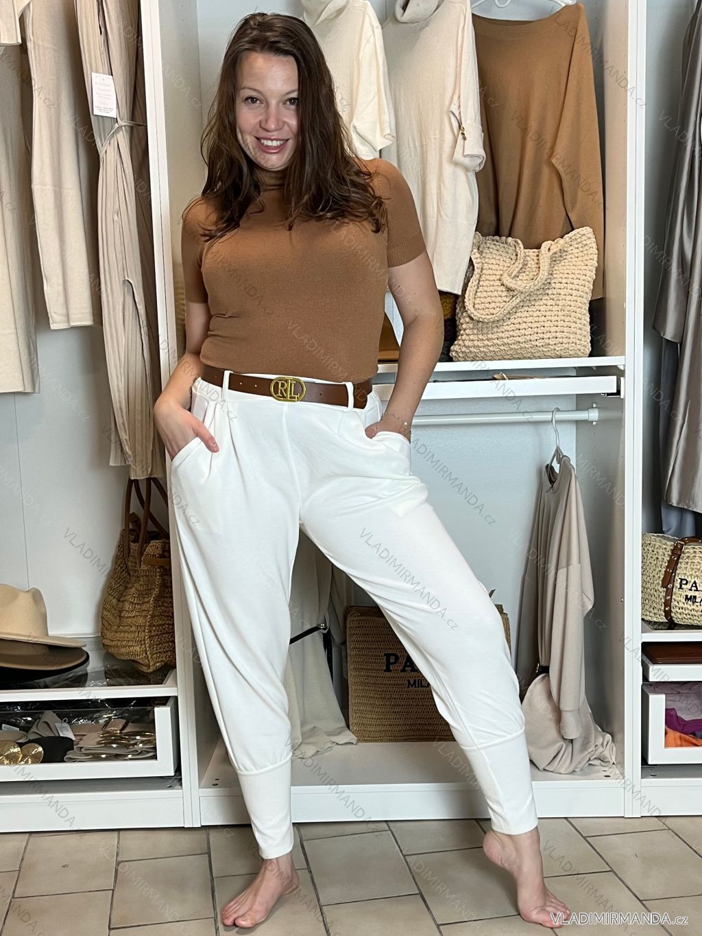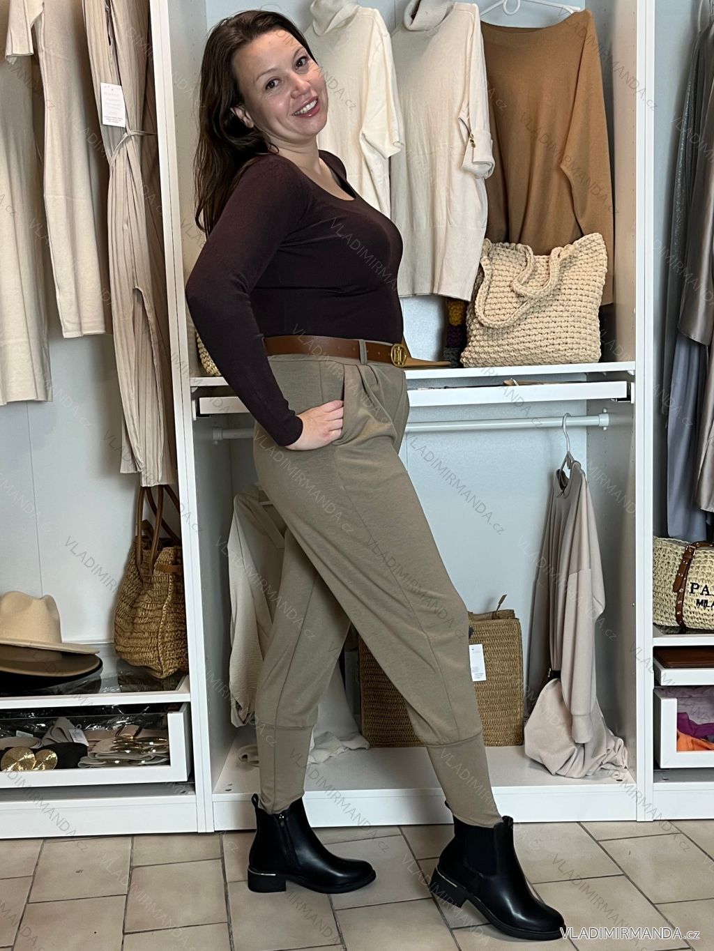 TOVAR (119105) > oblečenie dámske (80535) > Nohavice a džínsy (7923) > Nohavice elegantné (350) > Nohavice elegantné s opaskom dámske (S/M/L ONE SIZE) TALIANSKA MÓDA IM425030/DUR sv. hnědá S/M/L