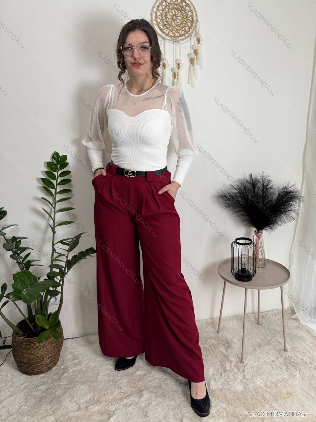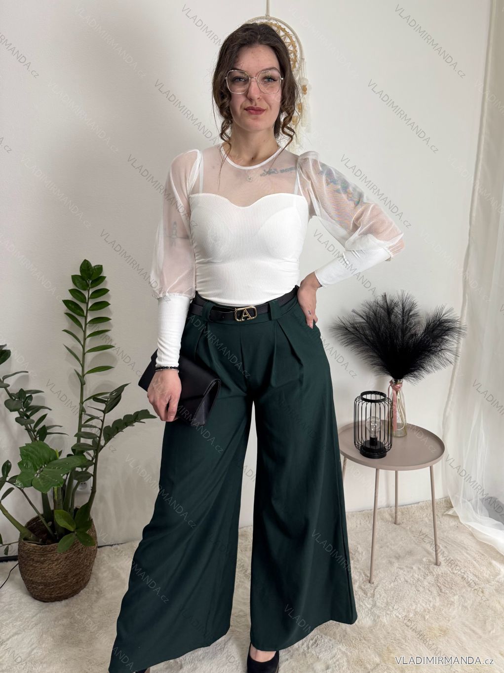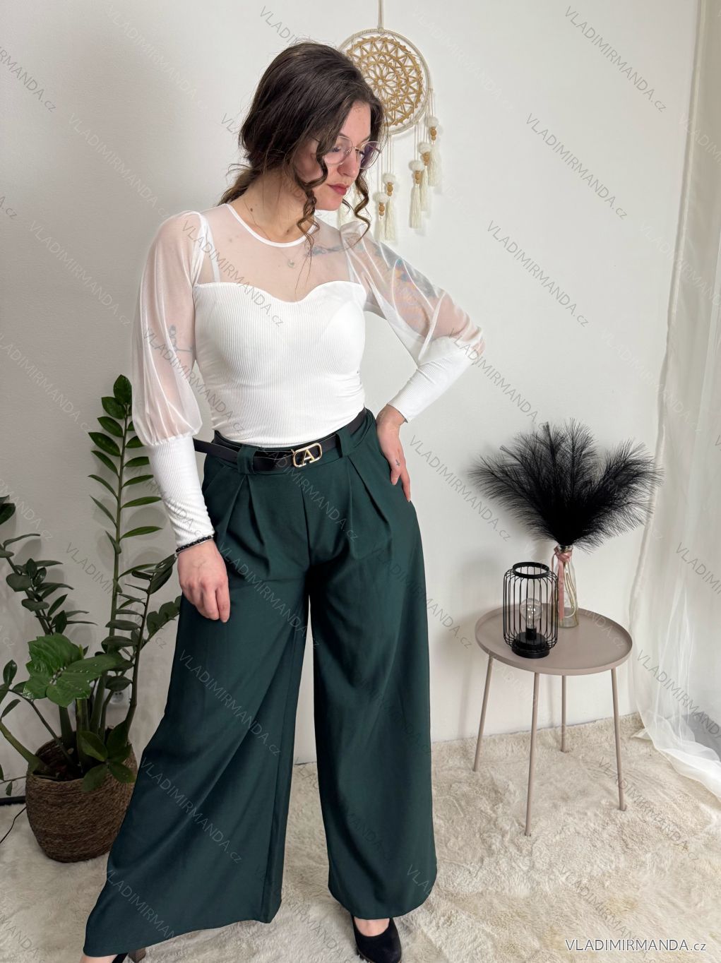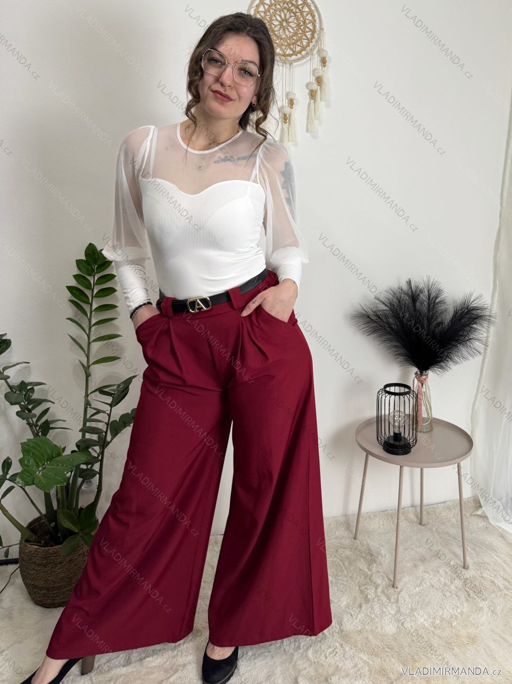 Široké elegantní kalhoty s páskem