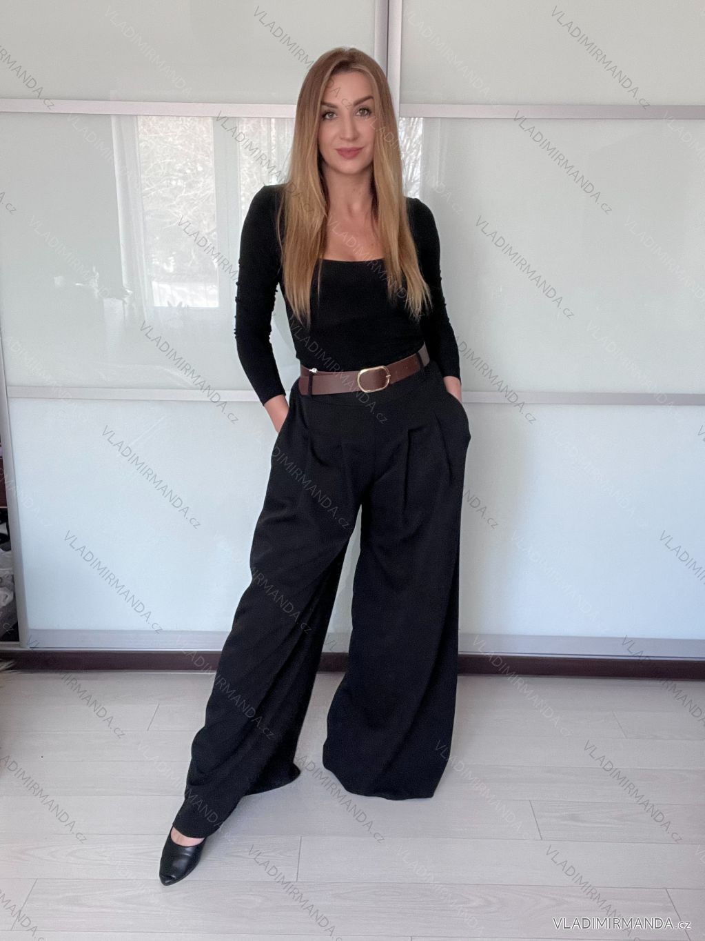 Nohavice elegantní dlhé s páskem dámske SIMONA (S/M/L ONE SIZE) TALIANSKA MÓDA IMPVN2625882/DU S/M/L čierna