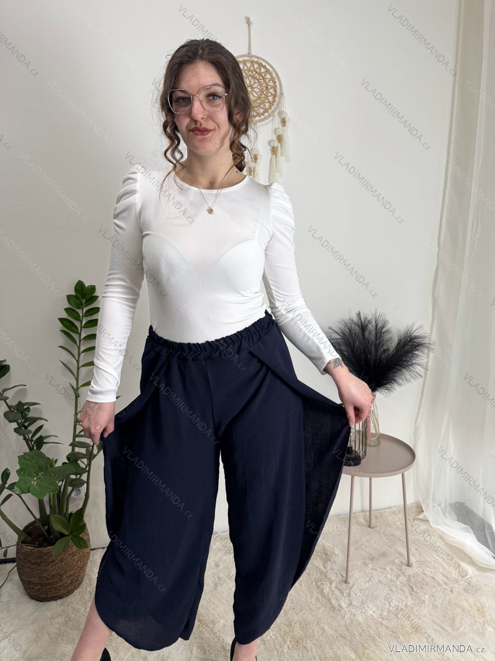 Nohavice letné zavinovací dlhé oversize dámske GINIE (S/M/L ONE SIZE) TALIANSKA MÓDA IMD24250