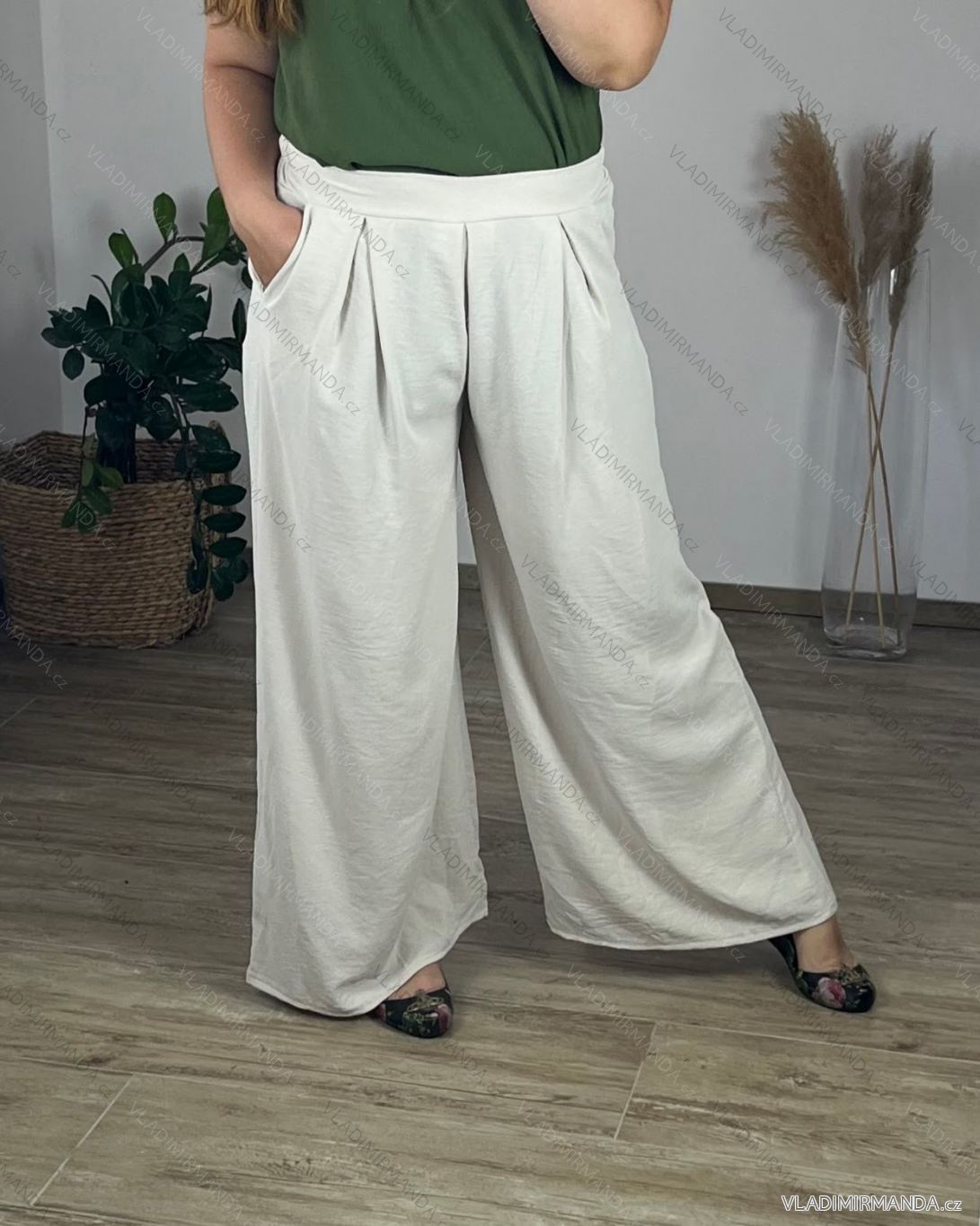 Nohavice letní dlhé dámske nadrozmer (50/52/54 ONE SIZE) TALIANSKA MóDA IM424FUGON/DUR zelená 50/52