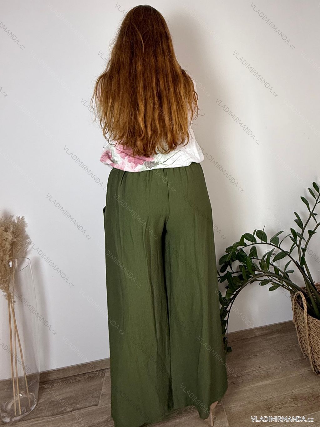 Nohavice letní dlouhé kalhoty dámske nadrozměr (50/52/54 ONE SIZE) TALIANSKA MÓDA IM3251112/DUR 50/52/54 zelená khaki