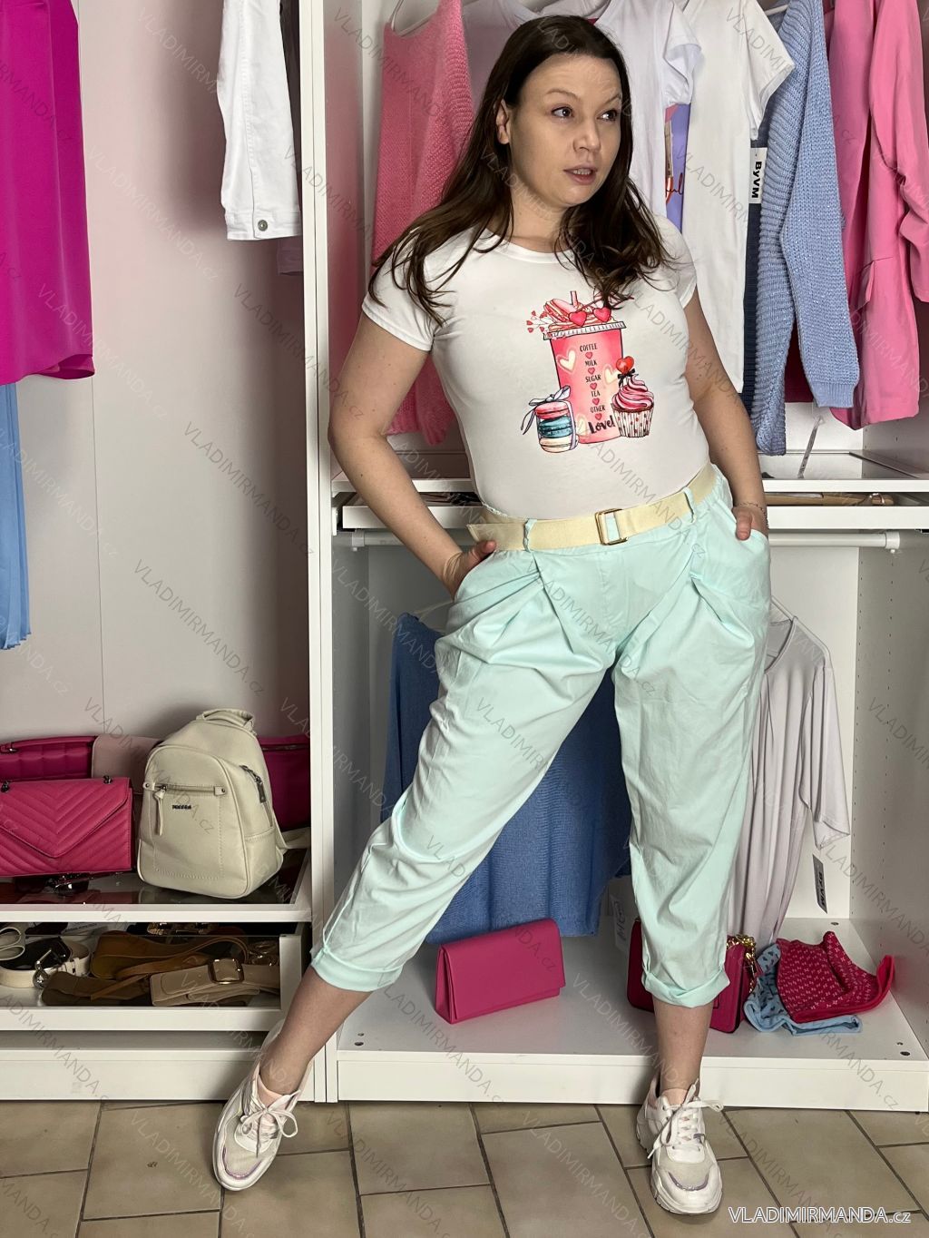 Nohavice outdoorové s opaskom dámske (S/M/L ONE SIZE) TALIANSKA MÓDA IM4261117/DUR sv. mintová S/M/L