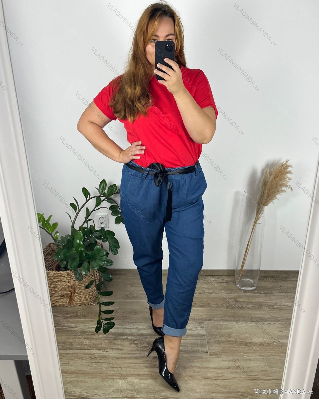 TOVAR (120331) > oblečenie dámske (81510) > Nohavice a džínsy (8045) > ALADINKY haremky (174) > Nohavice riflové dámske s mašlí nadrozměr (52/54) TALIANSKA MóDA IMSM24ELLA/DU 52/54 svetlo modrá