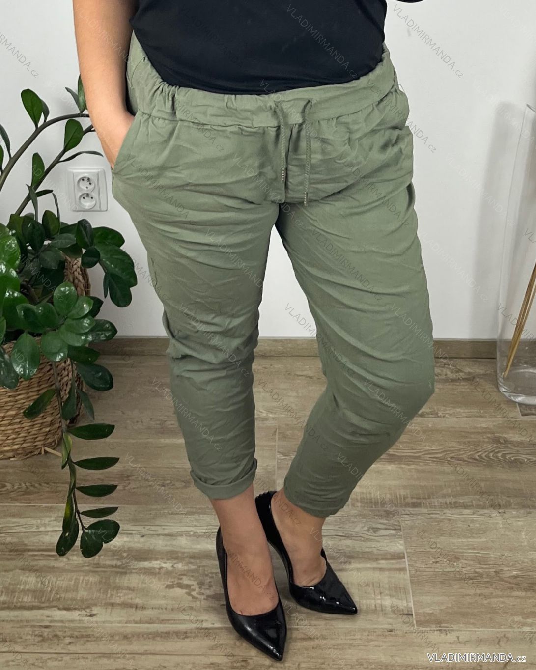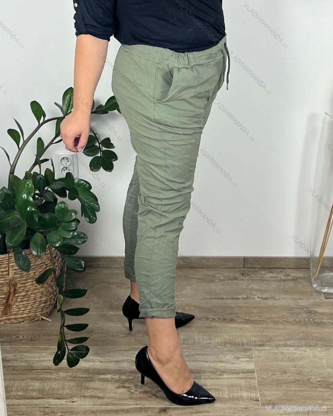 Nohavice strečové dámske nadrozmer (54/56 ONE SIZE) TALIANSKA MóDA IM424555/DU zelená khaki